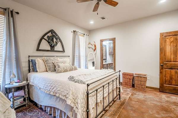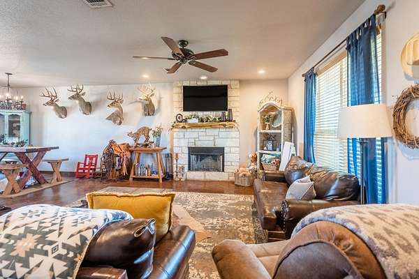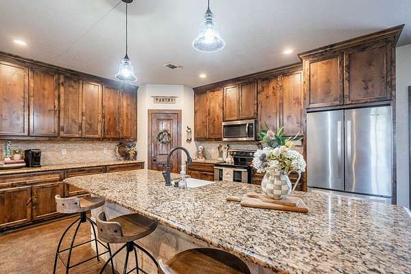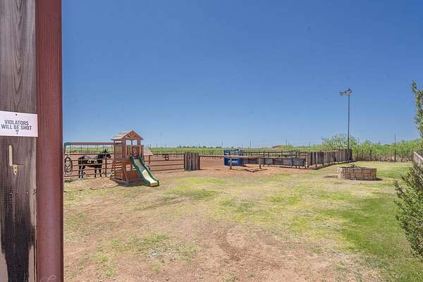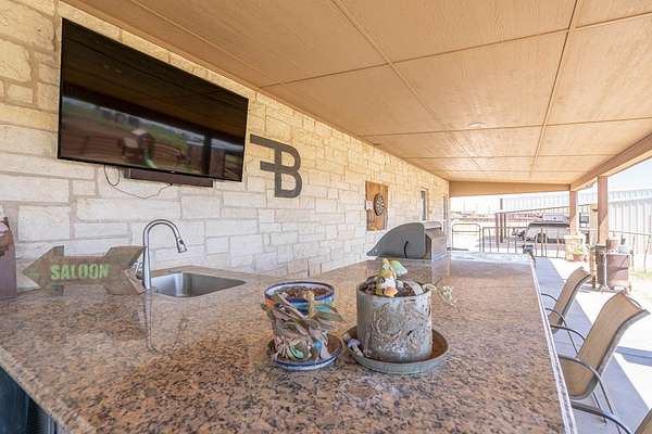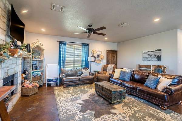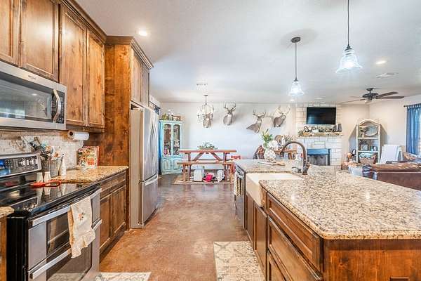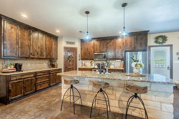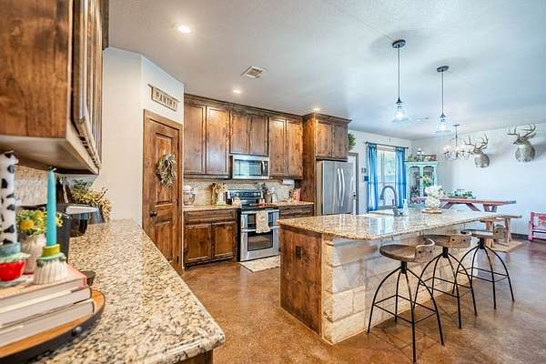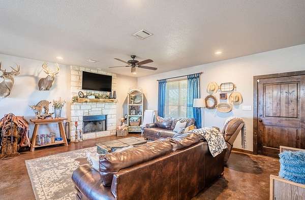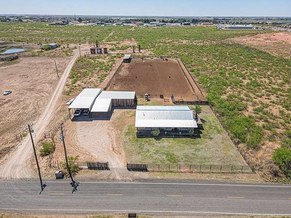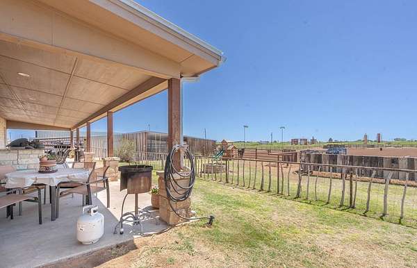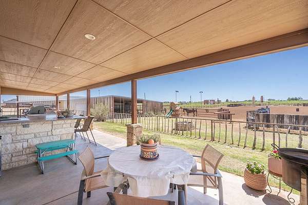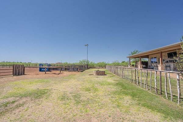 Est $3,429/moRemarkable horse property! Hill country-style home features an open-concept floor plan, showcasing a gorgeous farmhouse-style kitchen with a freestanding island and a walk-in pantry. Inviting living space with an Austin stone fireplace. Great-sized bedrooms with large walk-in closets. Step outside to find the impressive patio area with an outdoor kitchen overlooking the property. Roping arena with lights, horse barn, covered trailer/RV parking, and shop area. Property entirely fenced w/ gated entry. New standing seam metal roof and water heater. Own your own slice of West Texas Paradise!