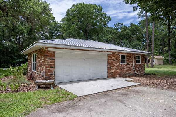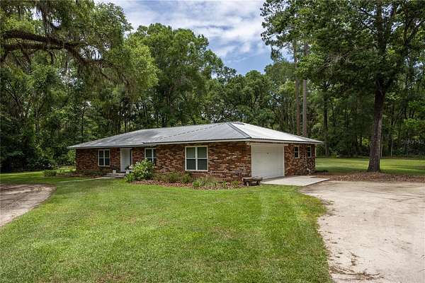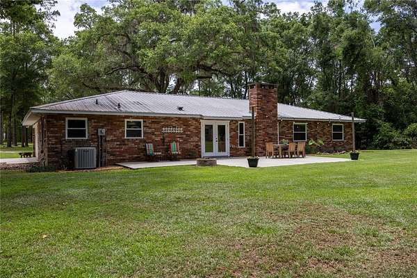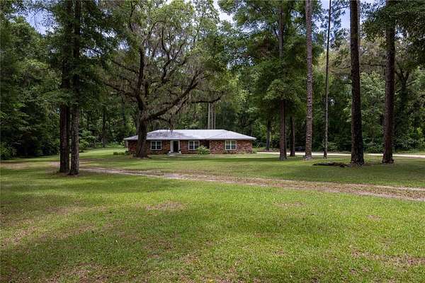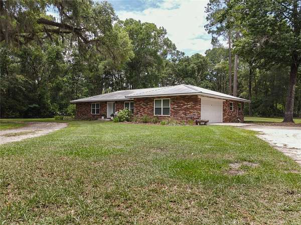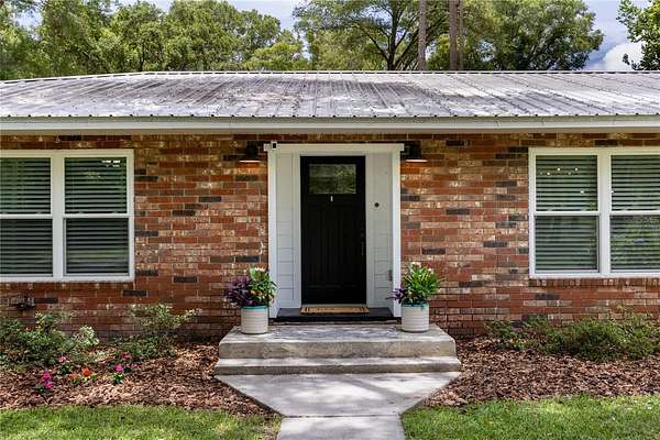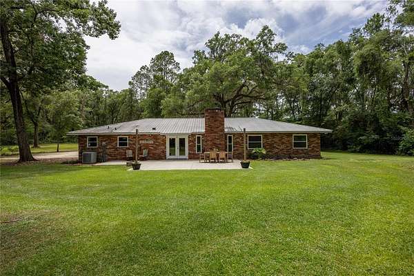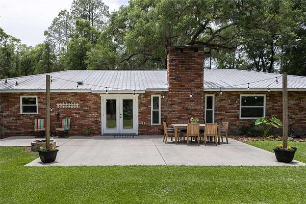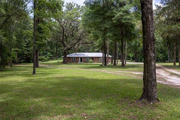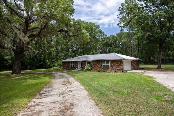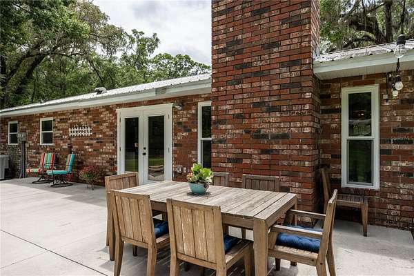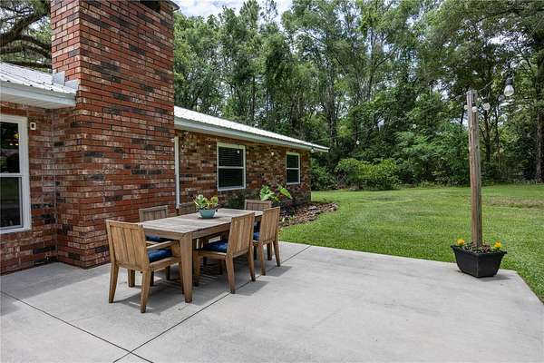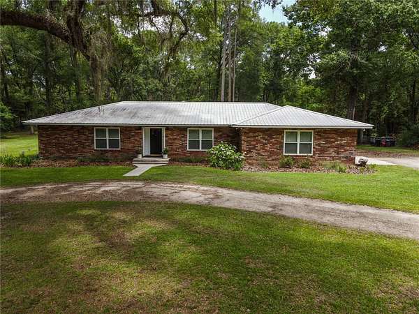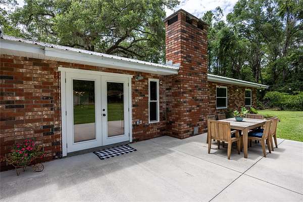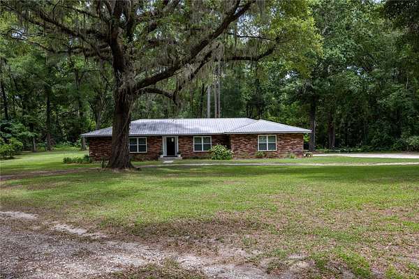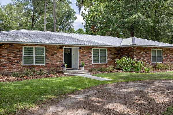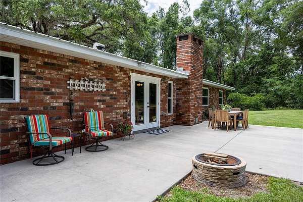 Under contract-accepting backup offers. Welcome to your own slice of North Florida paradise! Nestled on over 5 beautifully wooded acres in Alachua, this charming ranch-style remodeled brick home offers the perfect balance of comfort, functionality, and serene country living. Step inside and you're greeted by a cozy entryway with board and batten walls, that opens into a bright, airy open-concept floor plan--ideal for both everyday living and entertaining. The inviting living room features large windows that bathe the space in natural light and a warm fireplace that sets the tone for cozy evenings at home. The spacious dining room flows effortlessly into the thoughtfully designed kitchen, complete with butcher block countertops, a stylish copper sink framed by a picturesque window, double ovens and a huge walk-in pantry for ample storage. Just off the kitchen, a practical mudroom connects to the garage and includes built-in storage and a convenient half bath with washer and dryer. The primary suite offers a spacious bedroom with a private en-suite bath and custom closet, creating a comfortable retreat. Two additional bedrooms provide versatility for guests, family, or a home office, and share an updated, modern full bathroom. French doors off the main living space open to a large patio--perfect for relaxing or entertaining--overlooking the tranquil property dotted with mature oak trees, and plenty of wildlife! Outside, you'll find a detached barn, storage shed, and a charming picturesque chicken coop, offering a lifestyle of space, simplicity, and serenity. Whether you're looking for a homestead, hobby farm, or just a peaceful place to call home, this property is a must-see. Don't miss your chance to own this beautiful retreat just minutes from Gainesville and downtown Alachua.