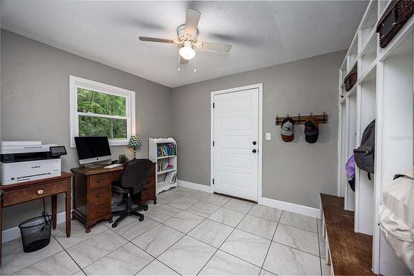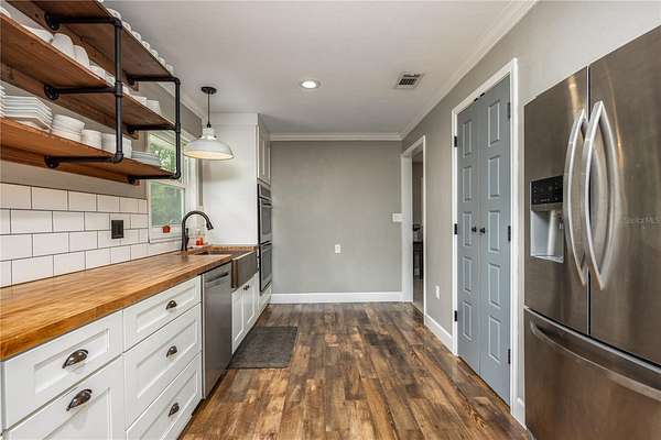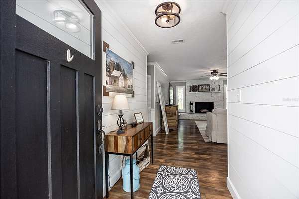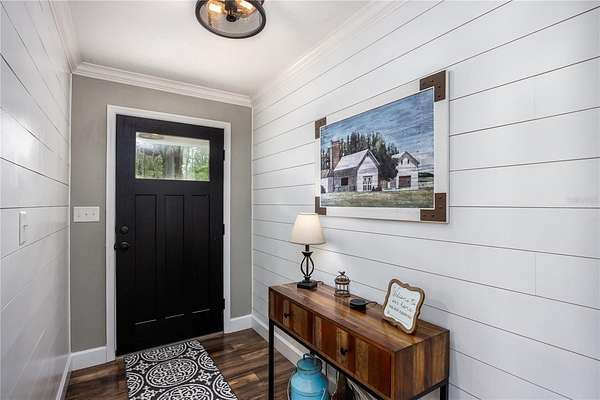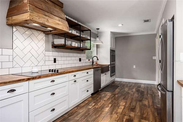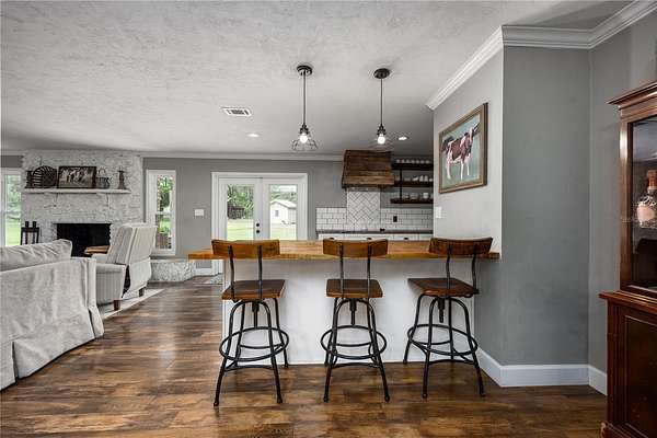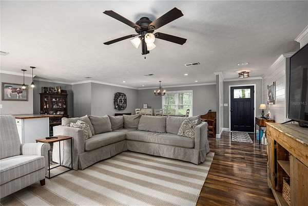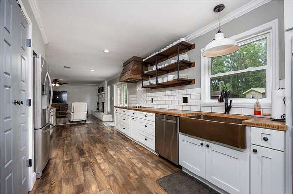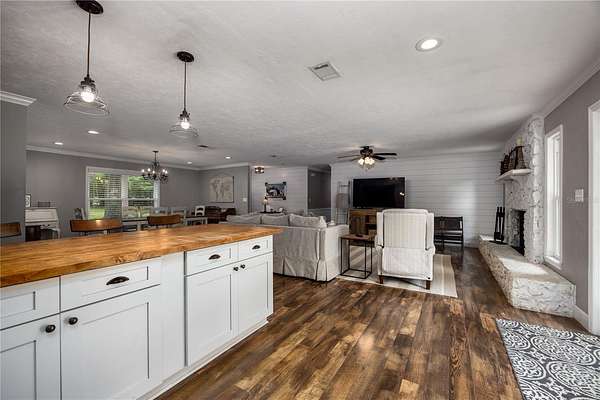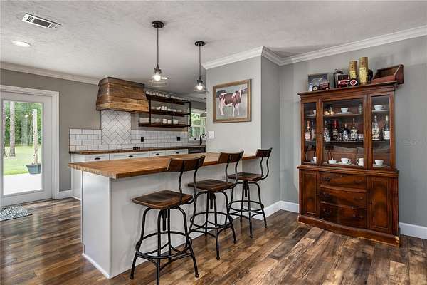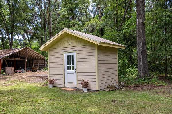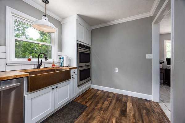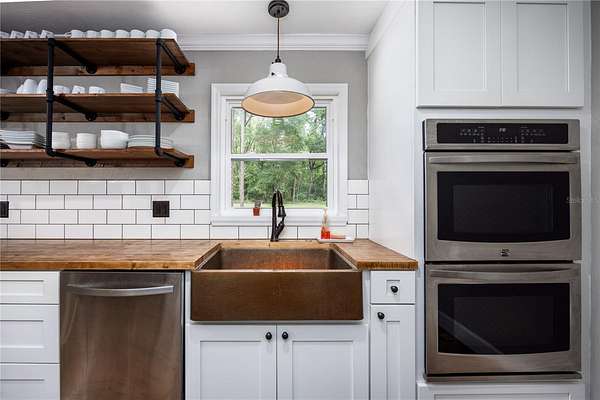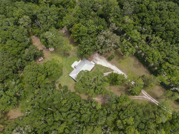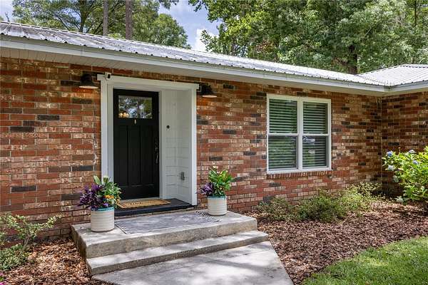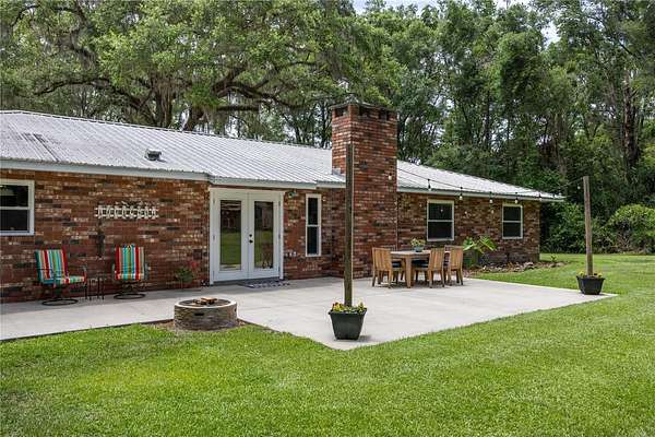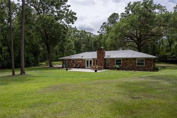Under contract-accepting backup offers. Welcome to your own slice of North Florida paradise! Nestled on over 5 beautifully wooded acres in Alachua, this charming ranch-style remodeled brick home offers the perfect balance of comfort, functionality, and serene country living. Step inside and you're greeted by a cozy entryway with board and batten walls, that opens into a bright, airy open-concept floor plan--ideal for both everyday living and entertaining. The inviting living room features large windows that bathe the space in natural light and a warm fireplace that sets the tone for cozy evenings at home. The spacious dining room flows effortlessly into the thoughtfully designed kitchen, complete with butcher block countertops, a stylish copper sink framed by a picturesque window, double ovens and a huge walk-in pantry for ample storage. Just off the kitchen, a practical mudroom connects to the garage and includes built-in storage and a convenient half bath with washer and dryer. The primary suite offers a spacious bedroom with a private en-suite bath and custom closet, creating a comfortable retreat. Two additional bedrooms provide versatility for guests, family, or a home office, and share an updated, modern full bathroom. French doors off the main living space open to a large patio--perfect for relaxing or entertaining--overlooking the tranquil property dotted with mature oak trees, and plenty of wildlife! Outside, you'll find a detached barn, storage shed, and a charming picturesque chicken coop, offering a lifestyle of space, simplicity, and serenity. Whether you're looking for a homestead, hobby farm, or just a peaceful place to call home, this property is a must-see. Don't miss your chance to own this beautiful retreat just minutes from Gainesville and downtown Alachua.