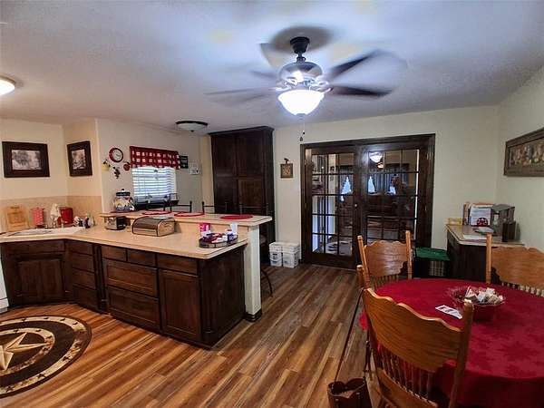 Country living with room to breathe!!!!Beautiful renovated property sits on over 2 acres. Welcome to your slice of Texas and bring your horse. No HOA and no restrictions. This 3-bedroom home has plenty of room for all those family gatherings. This home is located far enough away from the hustle and bustle of the city yet close enough for shopping and the eateries. With formal dining room or 2nd living room. The primary living room is quite large with a wall of windows great for reading or relaxing. It is equipped with an additional room that would be great for a 4th bedroom, game room, sunroom, or office. The double sets of French doors, custom knotty pine cabinets, vinyl plank flooring, and wood trim give it that country feel. Don't miss out on this terrific gem. Book your showing today!!!
