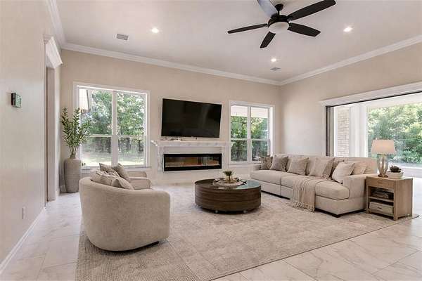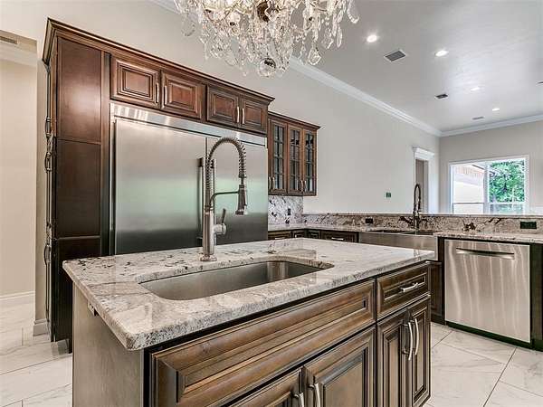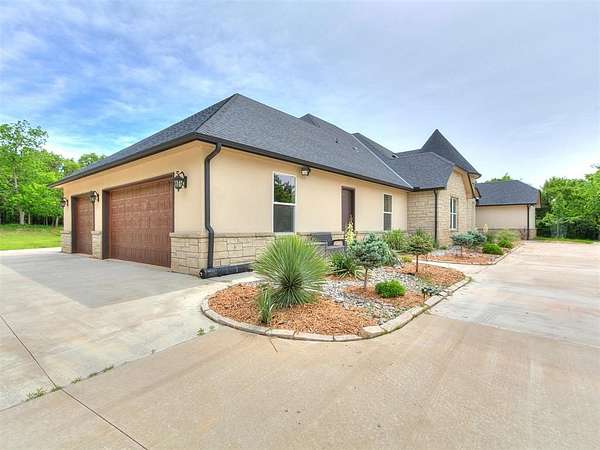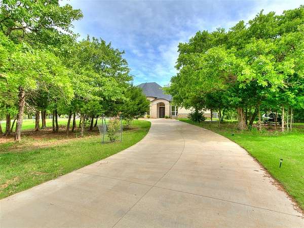 Luxurious Custom Estate on 2.5 Wooded Acres in Gated Edmond Community - About one Mile east of I-35 and bordering Lake Arcadia-- Step into refined living with this stunning 5,176 sq ft custom-built home, completed in 2021, and tucked away on a peaceful cul-de-sac in a private, gated neighborhood. Located within the top-rated Edmond School District and steps away from Lake Arcadia, this estate offers the perfect blend of privacy, elegance, and convenience. Designed for both comfort and sophistication, the home features 5 spacious bedrooms, each with a private ensuite, plus an elegant half bath. The master suite is a serene retreat with luxe finishes, rainfall shower, dual toilets, custom chandelier, and scenic views. Exceptional craftsmanship shines throughout-from the post-tension slab foundation and spray foam insulation to Low-E Pella windows, a whole-house generator, and advanced multi-zone HVAC. Every detail has been thoughtfully curated for energy efficiency, durability, and style. Living and entertaining spaces abound: formal dining and living rooms, a large recreation room, and an all-season room with vanishing Western window system for seamless indoor-outdoor living. The chef's kitchen is a true showpiece, featuring a 6-burner commercial gas range with griddle and double ovens, custom granite counters and backsplash, an expansive working pantry, and extensive cabinetry. Additional highlights include a steel above-ground tornado safe room, spacious laundry with built-in cubbies, granite surfaces throughout, elegant crystal lighting, abundant storage and Fruiting trees. This is more than a home, it's a sanctuary. Owner /Agent C.Mityas Schedule your private tour today and experience luxury living at its finest.