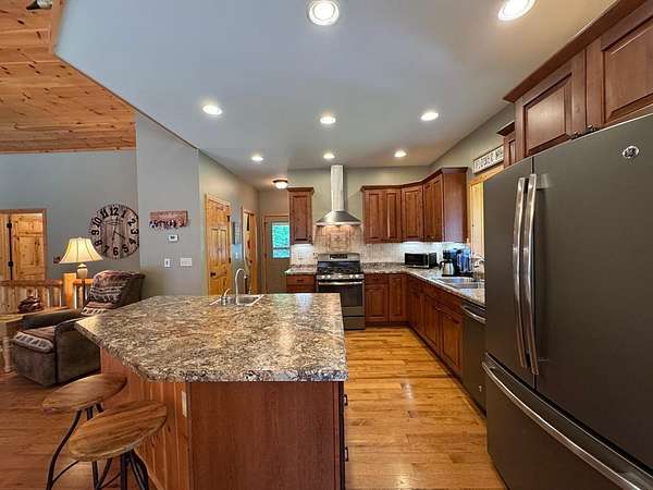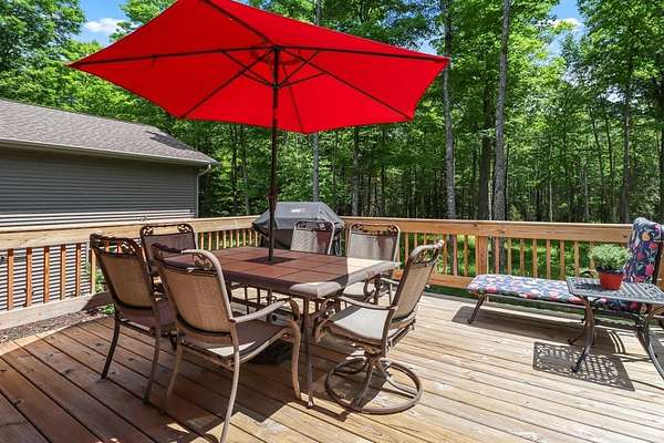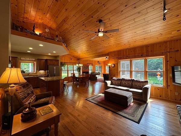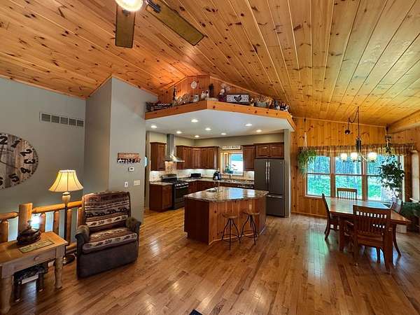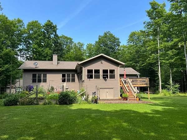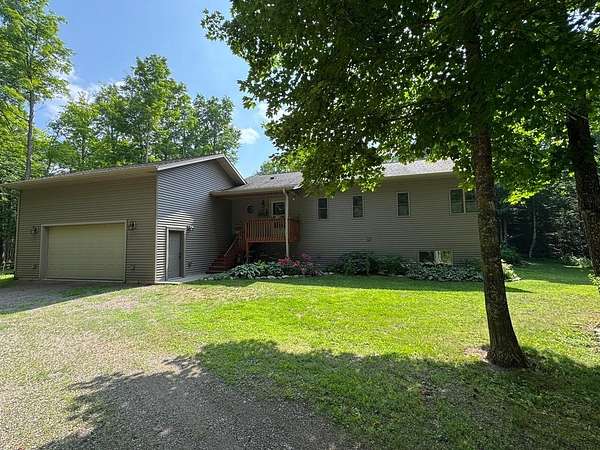 Ultimate privacy with nearly 20 acres of level wooded land bordering thousands of acres of State-owned forest on 2 sides, yet only minutes away from the Turtle Flambeau Flowage boat landing! This spectacular property features secluded trails, even one leading to the Flambeau River just a short walk away! Underground power to additional building site, 2 fully enclosed tree stands & 1 ladder stand are included & strategically placed. If that isn't enough to awe you, step inside this gorgeous custom built home blending cutting edge design with natural elements to create a truly one of a kind living space. Stunning kitchen, walk in pantry, beautiful fireplace, spacious Master Ensuite quarters with jet tub and tile walk in shower. In floor LL heating, Forced Air, Central Air, attached 24x26 garage, detached 32x24 garage with 2nd level, a storage shed, woodshed, beautiful landscaping, fenced in garden area & so much more! Direct trail access. Truly an Up North enthusiast paradise!