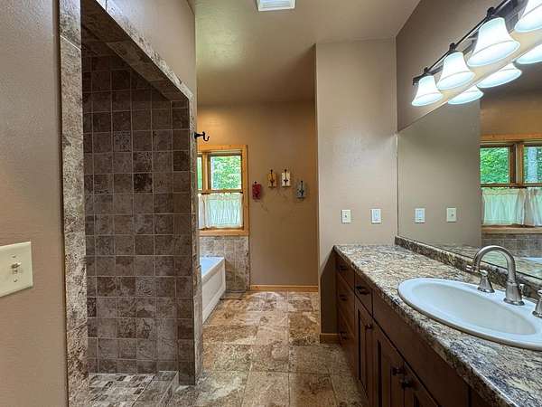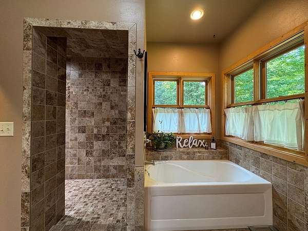 - Bath In Primary Bedroom, Cathedral Ceilings, Ceiling Fans, High Ceilings, Jetted Tub, Main Level Primary, Vaulted Ceilings, Walk In Closets