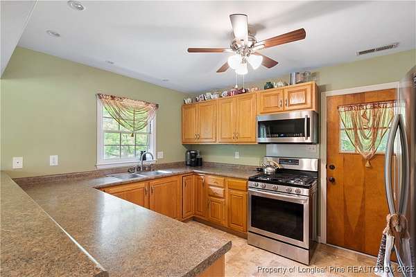 Welcome to your private retreat--nestled on just over 3 picturesque acres, this well-maintained home offers the perfect blend of country charm, modern comfort, and ample space for both relaxation and recreation. From the moment you arrive, you'll be captivated by the serene setting, complete with a scenic pond, mature trees, and a fenced-in area ideal for pets, gardening, or simply enjoying the outdoors. Whether you're looking for peace and privacy or space to entertain, this property offers endless possibilities. Inside, the large living room greets you with a cozy gas fireplace. The open layout continues into the dining area and the bright eat-in kitchen, which is equipped with sleek stainless steel appliances, and plenty of cabinet space . A flexible den just off the main living area provides extra space for a home office, playroom, library, or guest room--whatever suits your lifestyle. The primary bedroom is a peaceful retreat featuring its own access to a Jack-and-Jill bathroom, complete with a walk-in shower. Each of the three additional bedrooms is generously sized, offering comfort and versatility for family members or guests.Downstairs, the unfinished basement includes a second gas fireplace. The basement also connects directly to the attached one-car garage, offering convenience and additional storage space.