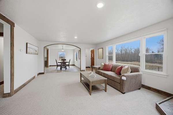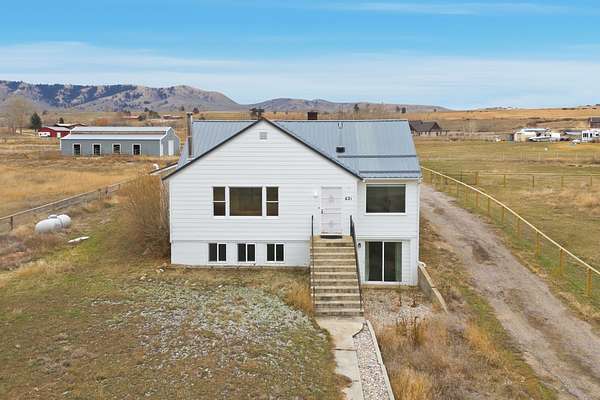 This charming, ranch-ready property offers the perfect blend of country living and functional livestock amenities. The 5 acres of land is thoughtfully laid out with a well-equipped barn, ideal for horses, llamas, goats or other livestock, while still leaving plenty of open space to enjoy the surrounding wide-open views and peaceful rural setting. At the heart of the property is a 3 bedroom, 2 bathroom farmhouse filled with warmth and character. Large windows frame sweeping views of the mountains, bringing natural light and the outdoors in. Whether relaxing inside or stepping out onto the property, the scenery is a constant backdrop. A detached garage with additional storage room, provides ample room for vehicles or equipment. A 6 stall barn, 4 with paddocks and automatic waterers is well equipped for livestock. The interior of the barn offers hay storage and an insulated tack room. This beautiful farmhouse is move-in ready and available for country living at its best.