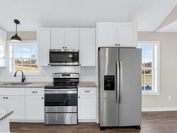 Welcome to this lovely like new home offering the perfect blend of modern comfort and peaceful living. Built in 2021, this 3-bedroom, 2-full-bath residence features an inviting open-concept layout ideal for both everyday living and entertaining. The home showcases durable LVP wood flooring throughout the main living areas and stylish granite countertops that elevate the kitchen's clean, contemporary design.