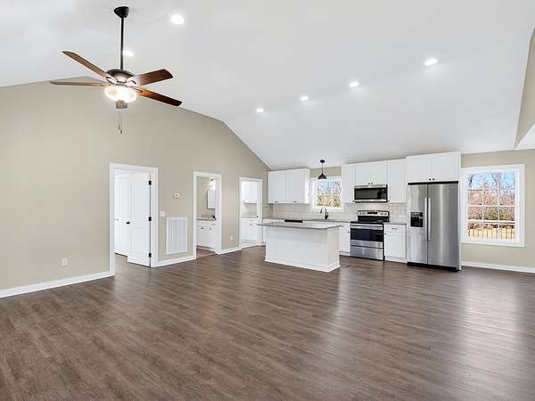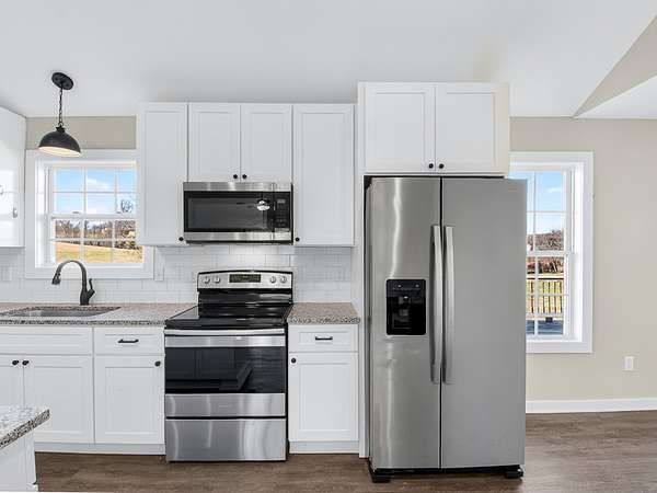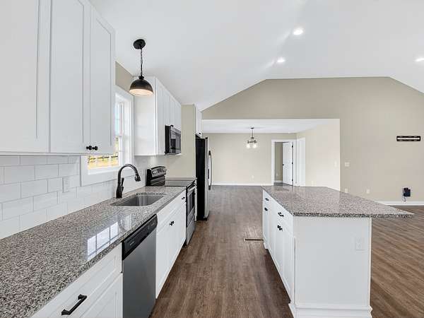 Welcome to this lovely like new home offering the perfect blend of modern comfort and peaceful living. Built in 2021, this 3-bedroom, 2-full-bath residence features an inviting open-concept layout ideal for both everyday living and entertaining. The home showcases durable LVP wood flooring throughout the main living areas and stylish granite countertops that elevate the kitchen’s clean, contemporary design.