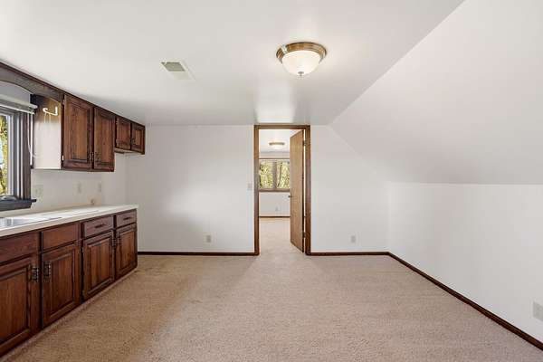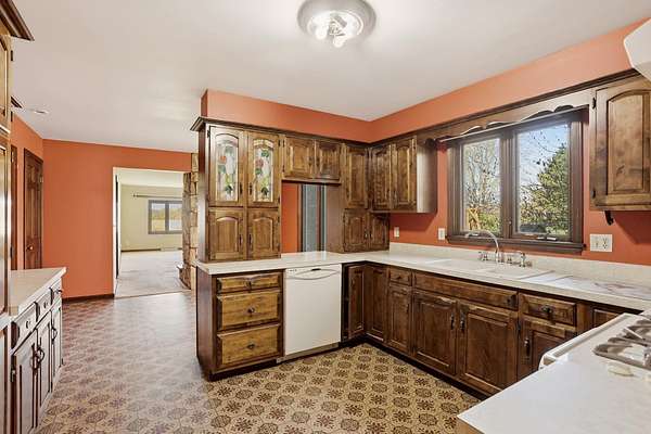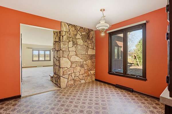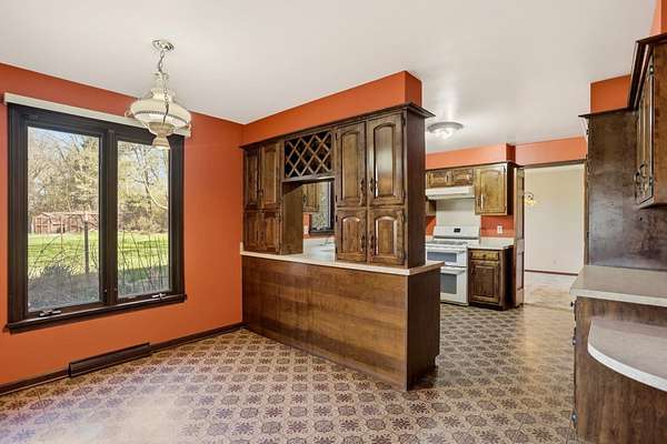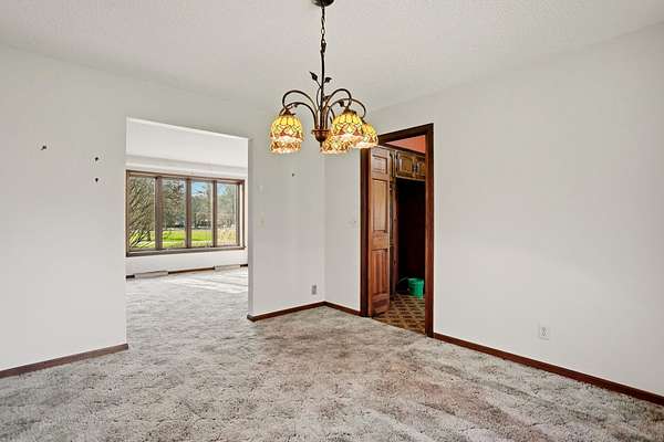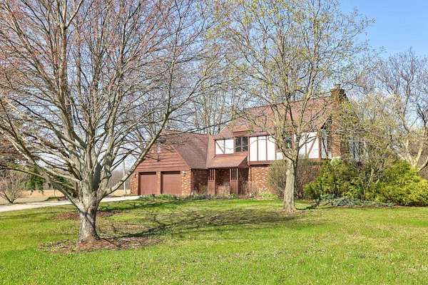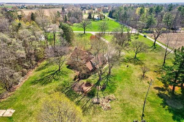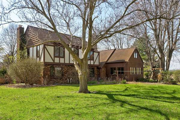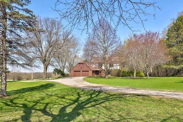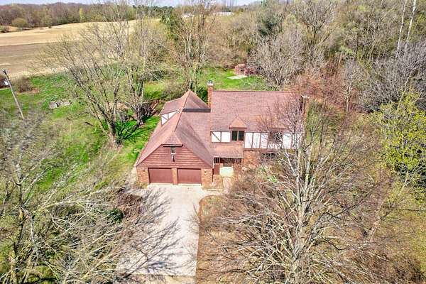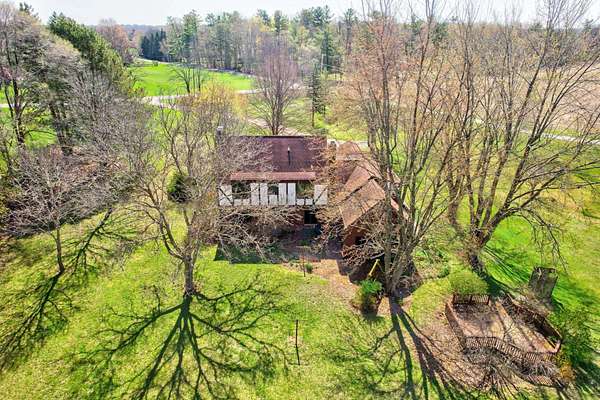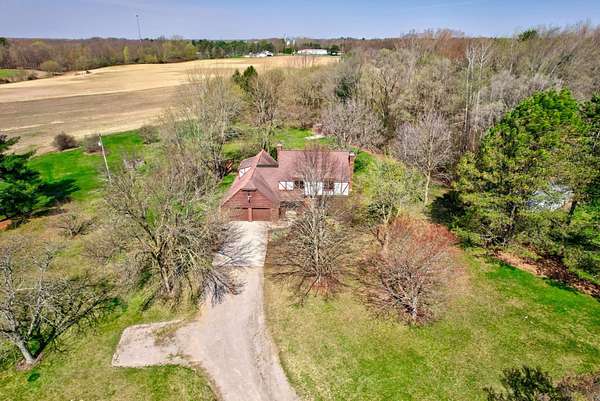 Welcome to an exceptional opportunity in an alluring location of Frankenmuth’s countryside where Bavarian character is combined with an abundance of space and privacy. Situated on just over 5 acres, with approximately 1.3 acres of mature wooded land, this estate offers the feeling of retreat while embracing the rich architectural traditions that define the area. Positioned on the corner of a scenic road, the home itself spans just under 2,500 square feet above grade, featuring a classic two-story layout, a full unfinished basement, and a carefully designed floorplan that includes a studio apartment perfect for multi-generational living. The exterior showcases an authentic Bavarian theme, creating a striking first impression and a perfect canvas for future landscaping enhancements. A covered front porch welcomes you inside to a traditional entryway adjacent to a spacious living room that centers around a timeless brick fireplace, presenting a warm and inviting atmosphere. The kitchen continues the home’s distinctive character with Bavarian-inspired design elements, complemented by both a formal dining room and breakfast nook. Transitioning from the kitchen, the oversized family room features a second custom stone fireplace and provides direct access to a bright three-season room, wrapped in windows and filled with natural light. Upstairs, you’ll find four bedrooms, including a comfortable primary suite. What truly sets this home apart is the expansive studio style guest or in-law suite offering over 500 square feet of private living space complete with its own bedroom, full bathroom, and kitchen. This space may be ideal for extended family, guests, or a variety of other uses. Additional highlights to this space include another 500 square feet of unfinished attic space above the garage, perfect for storage or future finishing. With completion, this area could bring the home to nearly 3,000 square feet of above grade living space. The garage offers parking for two cars along with an extended bay. Outside, a private patio area provides a quiet place to relax, entertain, or peacefully enjoy the natural surroundings. Properties offering this combination of acreage, location, and size are truly hard to find in this Frankenmuth School District community.