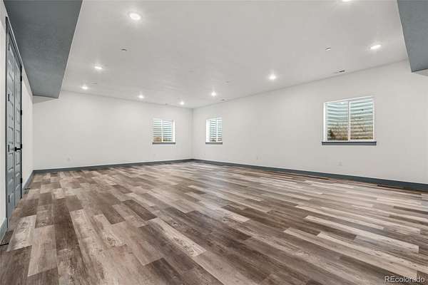 The fully finished basement features 10-foot ceilings, giving the lower level the same open, airy feel as above — ideal for a home theater, gym, game room, or multigenerational living space.