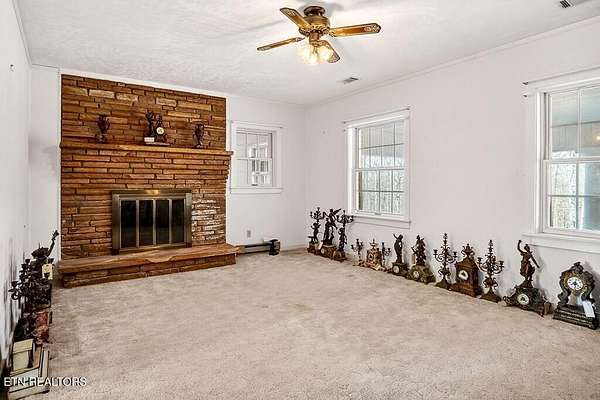 A truly rare offering, Will's Hall is a one-of-a-kind estate situated on 40 unrestricted acres in Cookeville, Tennessee. This full-brick residence offers approximately 8,407 finished sqft, with an approximate additional 9,253 sqft partially finished/unfinished, providing exceptional opportunity for expansion or customization. Built with extraordinary craftsmanship, the home features 8 wood-burning fireplaces, intricate hand-crafted trimwork, hardwood flooring & architectural details inspired by European castles & classic Southern estates. Much of the home was constructed using timber milled directly from the property, reflecting a level of quality and attention to detail that is difficult to replicate today. The fourth-floor loft & the entire west wing are framed and wired and ready for finish work, offering flexibility for additional living space or guest quarters. Buyer to verify ALL information