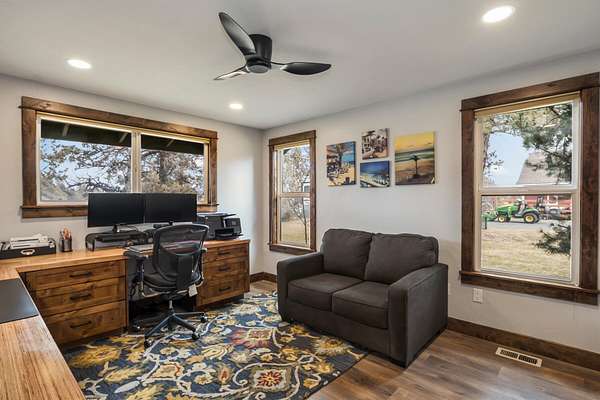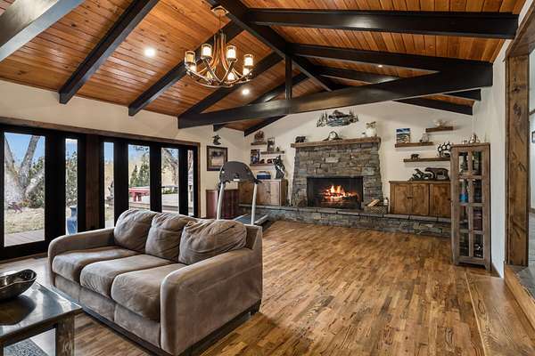 A gorgeous country setting and desirable horse property make this ranch-style home an exceptional value. Kitchen features new cabinetry, solid surface countertops, and all new appliances. Extensive updates include new roof with warranty, new attic insulation, new exterior paint including barn, new carpet, and newly refinished hardwood floors. Solid wood panel doors and hand-textured walls add character. Open-beamed living room with French doors leads to a spacious entertaining deck. Radiant floors warm the primary bath, and all closets offer custom organizers. Equestrian-ready with 4-stall barn, fenced and cross-fenced pastures, 3 acres of irrigation, canal along west boundary, Garage has 220 power.