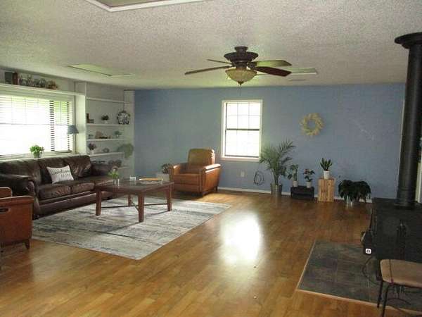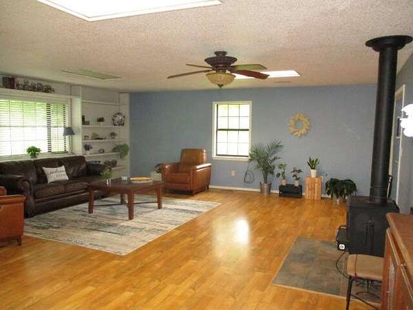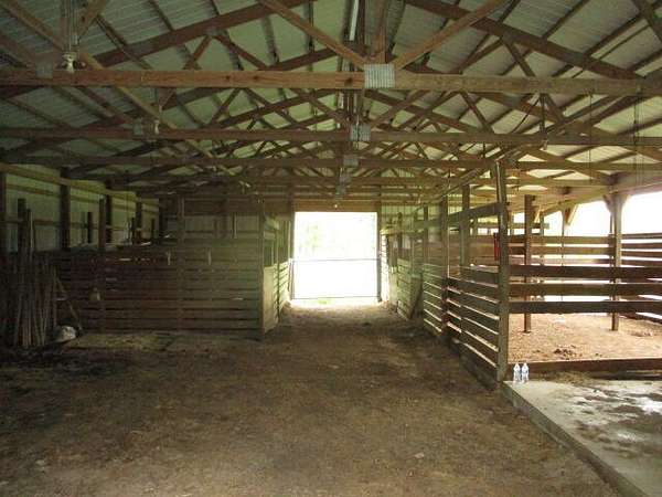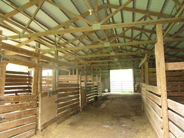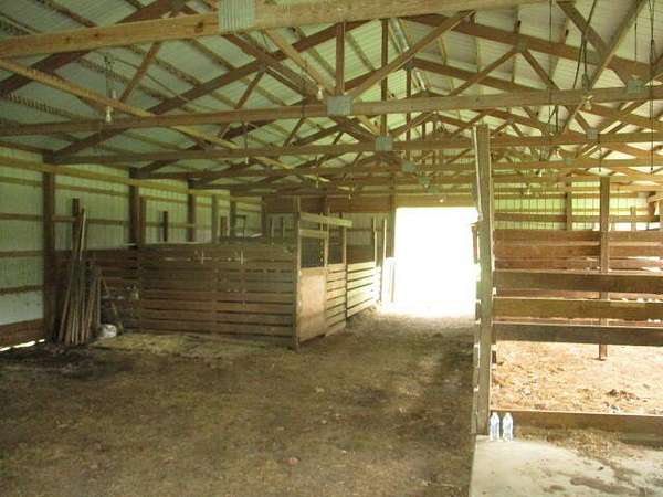 Big brick home with 3 bedrooms and 2 bathrooms, large living room and large kitchen with a lot of great cabinets. In the living room it has a feeling of a lot of room with a cozy wood stove. On the back porch there is a whole house wood stove that has not been use in many years. Also below the back porch area there is a small basement/storm shelter. This home is on a well with a nice barn and great pasture. The road split this property with about 30 acres with the home and buildings and 7 fenced acres across the road with some grass and woods for great hunting. When I was walking the property I personally flushed out a turkey and saw several others across the feild. This property is ready for your animals. Several working no freeze water faucets and a very nice pond are on the property.