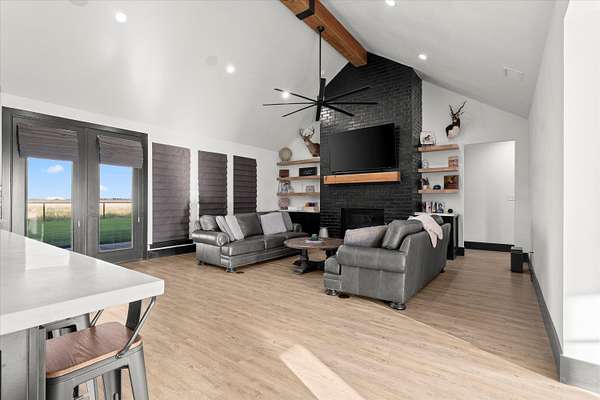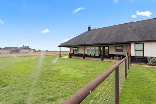 Farmhouse elegance meets contemporary comfort on 10 acres located in Shallowater ISD! Welcome to your dream home ~ This stunning 4-bedroom, 3-bathroom home sits on 10 acres and offers the perfect blend of rustic charm and modern sophistication. The open layout offers a spacious living area with tons of natural light, surround sound, gourmet kitchen features a large concrete island which adds seating for 6, 5 burner gas stovetop, farm sink, stainless steel appliances, double oven & a walk-in pantry with additional storage. The secluded primary suite features a luxurious soaking tub, oversized walk-in shower with rain head and spa-like ambiance. A walk-around closet with a hidden safe, dressing table and tons of storage. Three additional bedrooms are ideal for family, guests or home office and do not miss the bonus space upstairs which would be fantastic for a game-room! Expansive 30X40 insulated shop perfect for your hobbies, boat parking or additional covered parking. 2 water wells for irrigation and domestic use. Sprinklers in the front and backyard! Pipe fencing and no climb wire, planted in native grass. Whether you're seeking peaceful country living or a place to entertain, this property delivers. With room to roam, grow, and create ~ Welcome Home!