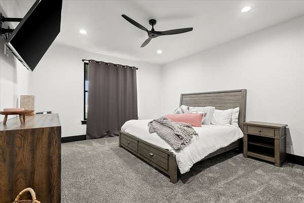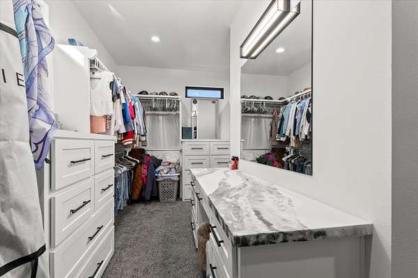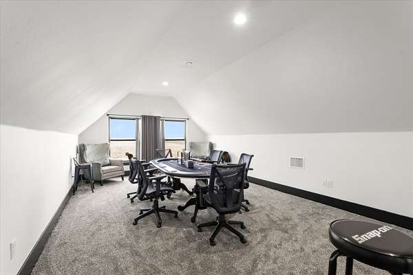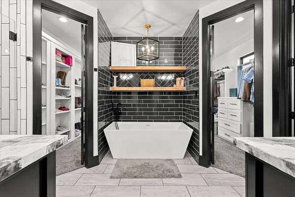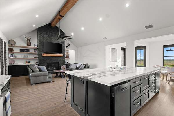 - Beamed Ceilings, Bookcases, Breakfast Bar, Ceiling Fan(s), Concrete Counters, Double Vanity, Entrance Foyer, High Ceilings, Kitchen Island, Open Floorplan, Pantry, Soaking Tub, Vaulted Ceiling(s), Walk-In Closet(s)
