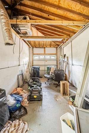 The property includes a detached 12' x 12' metal storage shed with concrete floor and electricity (lights and receptacles)--ideal for equipment, tools, or job-site storage. Additional features include a recent metal roof, newer windows, and mature trees. Zoning RS-60 allows for teardown and new construction.