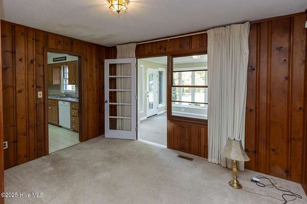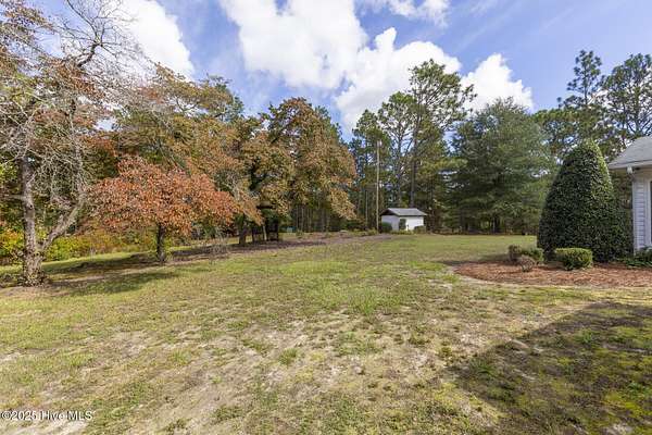 Discover the potential in this character-filled 2-bedroom, 1.5-bath home on 2.5 beautiful, wooded acres. Perfectly situated between Pinehurst and Seven Lakes, this property offers a peaceful, country feel with the convenience of nearby shopping and dining. Set well back from the highway for added privacy, this home features a spacious layout with two inviting living areas, each with its own fireplace. The large living room boasts a picture window and a brick hearth, while the rustic family room offers warm wood accents and charm. Enjoy year-round views of nature from the nice enclosed back porch with walls of windows overlooking the expansive backyard. Being sold AS-IS, this home is full of character and ready for your personal touch. Whether you're looking for a peaceful retreat, a renovation project, or an investment opportunity, this property is brimming with potential in a prime location. NOTE: flooring underneath the carpet in the Family room and the Carolina room/Enclosed porch is concrete. All other areas with carpet has hardwood flooring underneath.