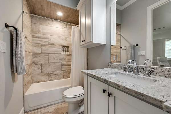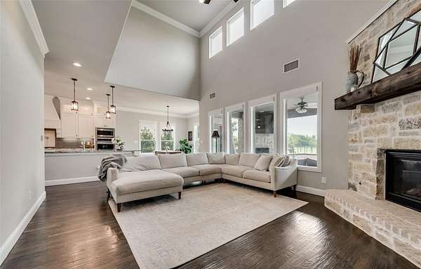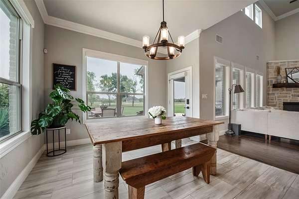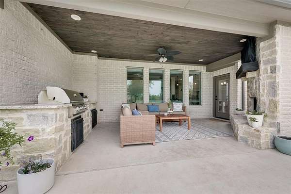 Sitting on just over 1.5 acres inside this gated community, and with its own gated entrance, this fully updated home offers over 3,300 square feet with 5 bedrooms and 4 bathrooms, plus a layout that just feels easy to live in. From the moment you walk in, you’ll notice the natural light, open flow, elevated finishes, real hardwood floors, and automated window blinds that add both convenience and a touch of luxury. The kitchen is truly the heart of the home, featuring high-end finishes, luxury countertops, and luxury appliances, with plenty of space to gather—opening seamlessly into the main living and dining areas, making it perfect for entertaining or everyday life. Downstairs, you’ll find two bedrooms, each with their own bathroom—a rare and functional setup that works perfectly for guests or multi-generational living. The primary suite is tucked away for privacy and offers a beautiful bathroom with soaker tub along with generous closet space. Upstairs adds even more flexibility with an oversized bonus room that easily functions as the fifth bedroom, complete with a large walk-in closet—perfect for guests, a private suite, or additional living space like a game room, media room. Step outside and it only gets better. The backyard is set up for both relaxing and entertaining, featuring an outdoor kitchen, cozy outdoor fireplace, and even an in-ground trampoline—all of that and still plenty of space left to add a pool or shop, or both. If you’ve been looking for something move-in ready with space, style, and that peaceful Poetry Ranch feel—this one is definitely worth seeing.