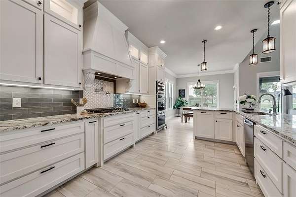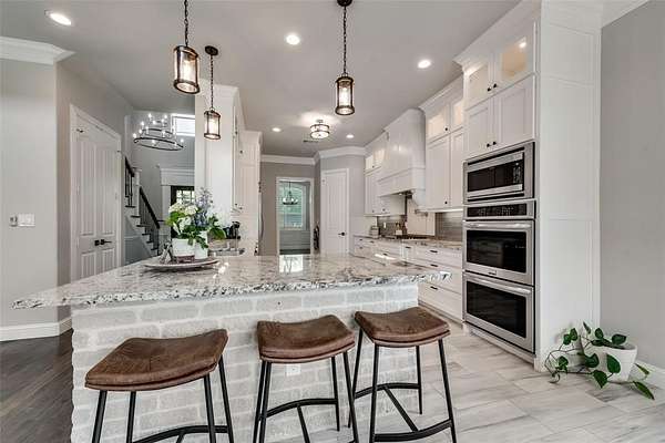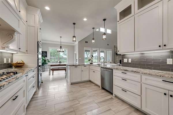 - Cable TV Available, Chandelier, Decorative Lighting, Double Vanity, Eat-In Kitchen, In-Law Suite Floorplan, Kitchen Island, Natural Woodwork, Open Floorplan, Pantry, Sound System Wiring