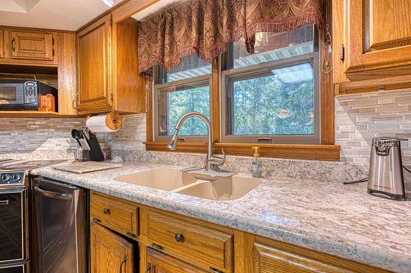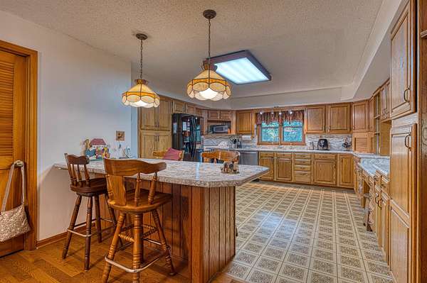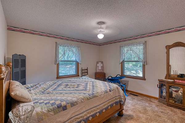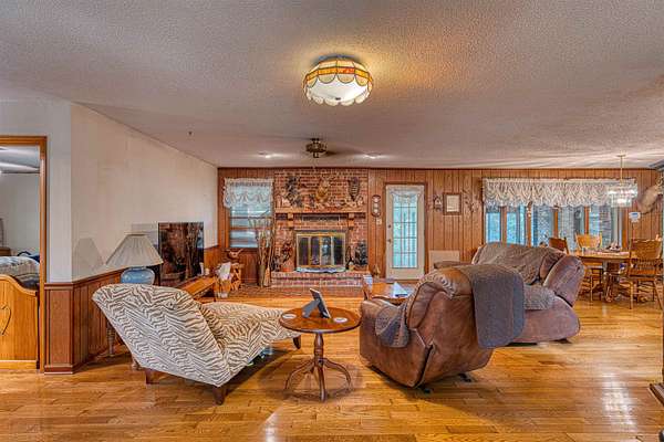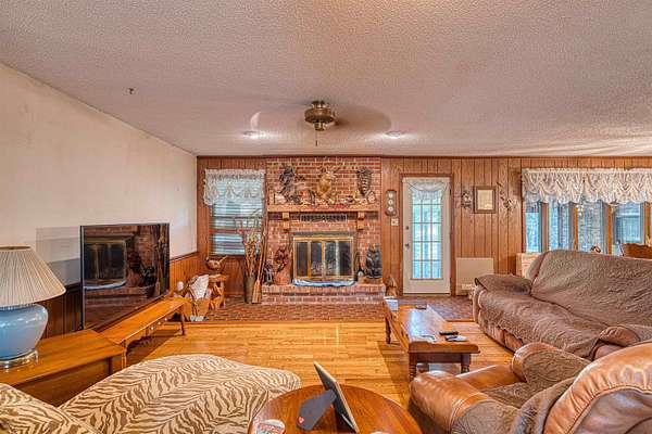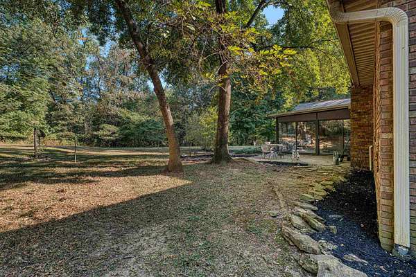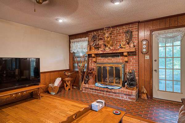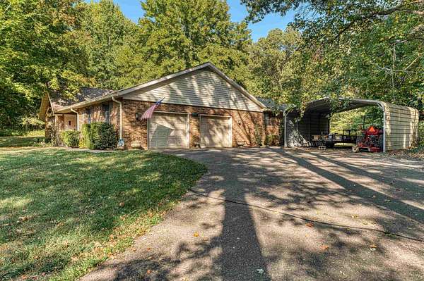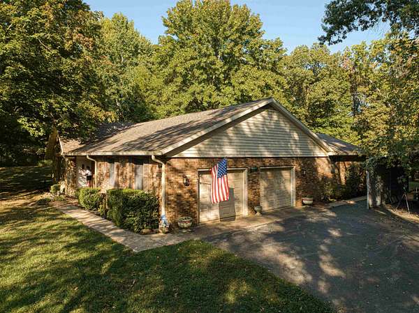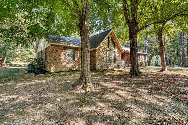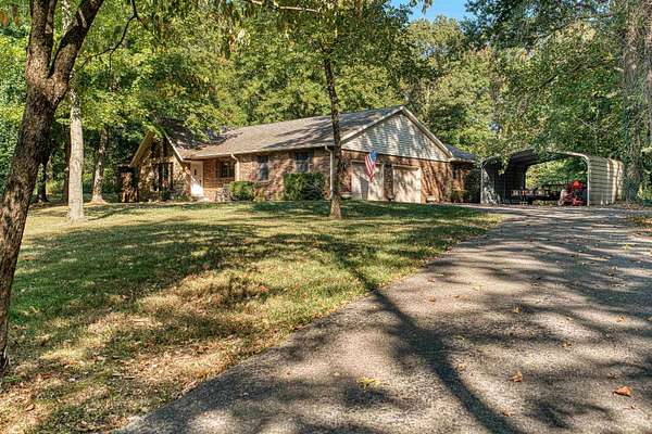 Enjoy the best of country living in this beautifully maintained all-brick ranch-style home featuring 3 bedrooms, 2 baths, and a spacious 2-car garage. Nestled on 2.86 acres, this property includes a serene lake stocked with catfish galore -- perfect for peaceful afternoons or weekend fishing. Inside, you'll love the split floor plan, ideal for privacy and functionality. The oversized kitchen has an abundance of oak cabinetry, solid surface countertops, and a convenient serving bar that flows seamlessly into the dining area and large living room with a cozy gas log fireplace. The vaulted ceiling entryway creates a grand first impression. The owner's suite offers direct access to a sunroom -- a perfect spot for a hot tub or your morning coffee -- while the back patio invites you to relax and enjoy the quiet countryside. Additional features include: Geothermal HVAC system for energy-efficient comfort Owned propane tank that conveys with the property 12x12 storage building with loft 20x24 carport with metal roof and sides Connexon internet available This is a rare opportunity to own a move-in-ready home with land, water, and amenities already in place. Schedule your private showing today!