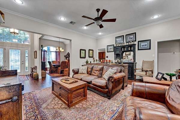 Like new throughout, 4 bedrooms, 3 full baths, Office (French door entry), Family (could be fifth bedroom 25 x 22), Living Room, Formal Dining, Kitchen, Breakfast area, laundry room, new wood floors, new tile floors in baths, kitchen and laundry, new paint, new granite thru out, all 3 baths totally remodeled, all new fixtures, all new stainless-steel appliances, new disposal, new under counter ice maker, new crown molding, new base boards, new pool equipment (Salt Cell and Control Panel-2025, Pool pump-2023), new water heater-2025, newer enlarged pantry in kitchen, patio off back facing pool (under house roof).
