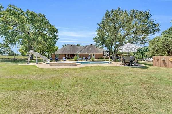 2 new barns, new chip-seal driveway (circular), new no-climb fences, cross fenced, new gates, solar custom entry gate, swimming pool with slide, fenced back yard, three separate pastures with water for animals and hay production, new 30-foot flagpole. Great horse ranch or cattle ranch. Agent is owner.