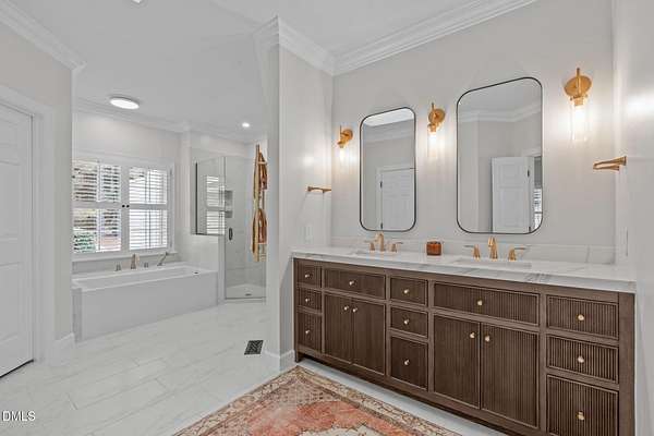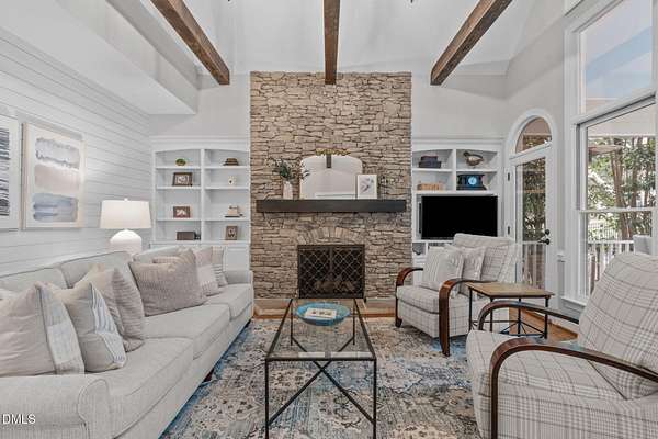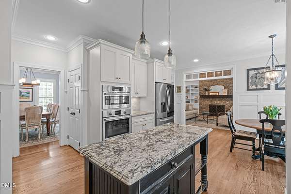 - Bar, Beamed Ceilings, Bookcases, Ceiling Fan(s), Central Vacuum, Chandelier, Crown Molding, Double Vanity, Eat-In Kitchen, Granite Counters, High Ceilings, High Speed Internet, Kitchen Island, Pantry, Primary Downstairs, Recessed Lighting, Room Over Garage, Separate Shower, Smart Light(s), Smart Thermostat, Vaulted Ceiling(s), Walk-In Closet(s), Wired For Data