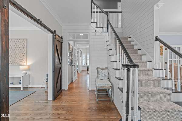 Privately set on nearly two acres, this exceptional luxury residence offers over 3,800 square feet of refined living space across three finished levels, designed for elevated everyday living and effortless entertaining. The main level is both functional and impressive, featuring an updated chef's kitchen that anchors the home and flows seamlessly into the family room, formal dining room, and a dedicated private office. A beautifully renovated owner's bath completes the level with thoughtful, high-end finishes. Outdoor living here is expansive and intentional. A screened porch, composite deck, and patio with a custom fire pit create multiple spaces for entertaining on any scale, all overlooking a fenced, private backyard. The grounds are enhanced with fruit trees, custom fenced garden beds, and a well-designed chicken coop and run--offering a rare blend of luxury, privacy, and self-sustained lifestyle. The second level is designed with hosting in mind, featuring three additional bedrooms and a massive bonus room with a dry bar--ideal for gatherings, game days, or movie nights. The third floor offers a versatile flex space that works beautifully as a private theater, executive office, or retreat, along with substantial walk-in storage. This home is thoughtfully equipped with CAT6 ethernet connections in every room and a security system with cameras that conveys. Major infrastructure upgrades have already been completed, including a new roof in 2024 and full plumbing replacement with PEX. A detached two-car garage includes walk-up space above with gas, water, and electricity already in place--presenting a rare opportunity for future guest quarters, a private studio, or additional living space. With exceptional storage, privacy, and a layout designed for entertaining both indoors and out, this property offers a level of refinement, flexibility and luxury lifestyle that is increasingly hard to find.
