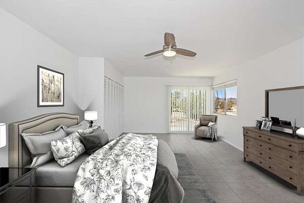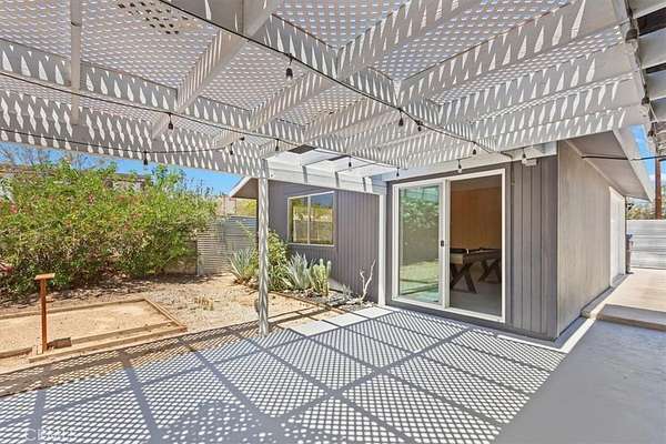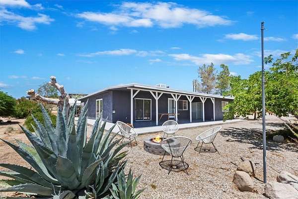 Welcome to 62171 Campanula Street - a serene 3-bedroom, 2-bathroom desert retreat nestled in the heart of Joshua Tree. This thoughtfully designed home offers comfort, flexibility, and opportunity, making it ideal for both full-time living and part-time rental income. Step inside to an open-concept living space bathed in natural light, featuring spacious bedrooms, a functional kitchen, and a cozy dining area. The bonus room--with a separate entrance--offers incredible potential as, additional entertainment area, office, art studio, or what your imagination has for maximizing your investment. Outside, enjoy panoramic desert skies and stargazing nights from your private backyard, with plenty of space to create your own oasis. Located minutes from Joshua Tree National Park, local shops, restaurants, and galleries, this home captures the essence of desert living. Whether you're looking for a personal sanctuary, a family home, or a short-term rental opportunity, this property checks all the boxes.