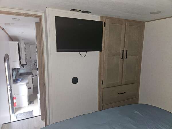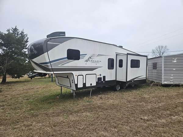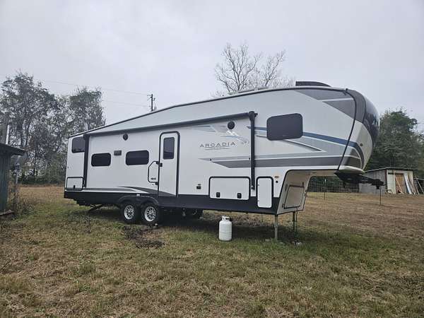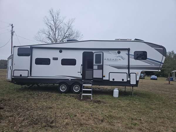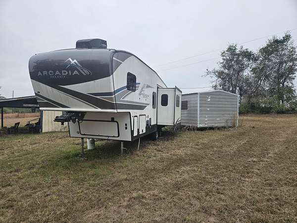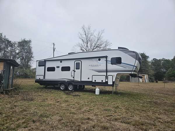 Est $608/moOver an acre just northwest of Florala proper with power and public water in place. Four hundred and forty feet of paved road frontage. Offered with a like new 2024 Keystone Arcadia 27' SBH fifth wheel RV. All the bells and whistles and ready to camp. Small structure with a kitchen and two bedrooms that needs rehabilitation but is given no value. Only cash offers considered