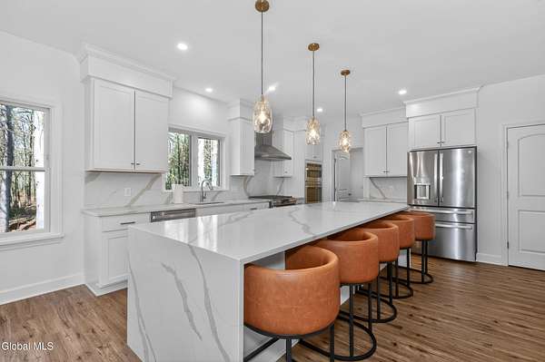 Short term rental available for 2026 Belmonte Stakes and 2026 Track Season! Available for Belmonte Stakes week 6/1-6/7 at $25,000 and track season 6/1-9/7 for $50,000. Brand new build and a perfect track season rental!! Conveniently located near Saratoga Airport, this spacious home features an oversized kitchen designed for entertaining, highlighted by an 11-foot eat-in island, double ovens, and dual dishwashers. Offering 5 bedrooms, including primary suites on both the first and second floors, plus ample additional living space, it provides a comfortable home-away-from-home experience. The finished basement adds exceptional amenities with a movie theater, gym, and sauna.