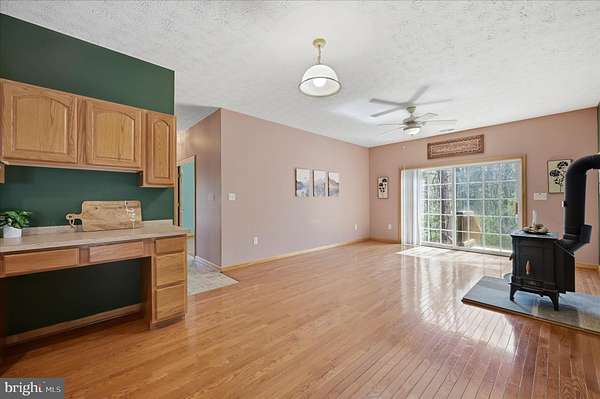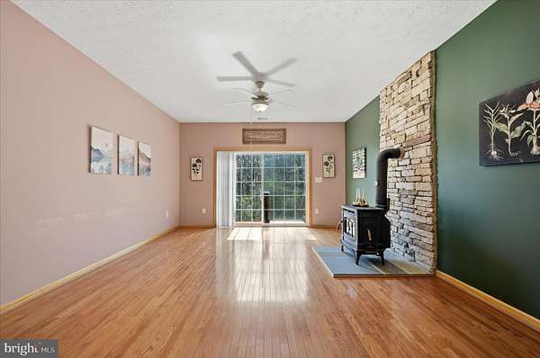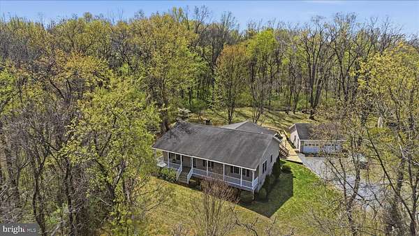 Surrounded by 18.2 wooded acres, this one-owner property offers privacy, quiet, and easy one-level living in a setting that feels tucked away from it all. With approximately 1,900 square feet, hardwood floors, and a spacious open kitchen, dining, and family room, the home has a comfortable, connected layout for everyday living and gathering. Stainless steel appliances, a built-in desk area in the kitchen, and a utility sink in the laundry room add everyday function, while the living room wood stove brings warmth and a welcoming focal point. The carpeted 4-season porch with new carpet expands the living space and offers a comfortable place to enjoy the surroundings year-round. A rear deck with ramp, detached 2-car garage, and 3-bedroom, 2-bath layout add flexibility and utility, while the primary suite includes a full ensuite bath and three closets. With room to personalize and improve over time, this is an appealing opportunity to enjoy wooded acreage, privacy, and the chance to make a well-loved property your own.
