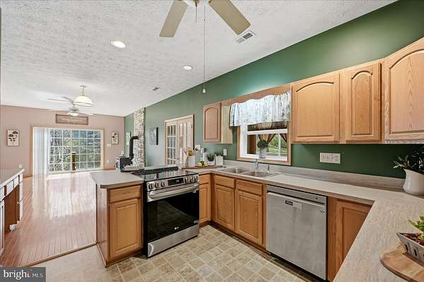 - Ceiling Fan(s), Combination Dining/Living, Dining Area, Entry Level Bedroom, Family Room Off Kitchen, Open Floor Plan, Pantry, Primary Bath(s), Recessed Lighting, Stall Shower Bathroom, Tub Shower Bathroom, Water Treat System, Window Treatments, Wood Floors