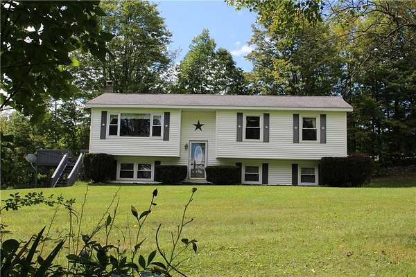 DON'T MISS OUT ON THIS METICULOULY MAINTAINED SPLIT LEVEL HOME on 2.6 beautifully landscaped acres located in a quiet rural setting. This lovely home has been consistently well maintained and updated. The kitchen has been updated with custom wood cabinets and counters as well as a stainless appliance package. Other updates include solid wood doors throughout. Adjoining the kitchen is a large eat in area with glass doors leading to a spacious deck offering outdoor living space. There is also a large formal dining room that can accommodate large gatherings. A spacious living room with wall-to-wall carpeting leads to 3 bedrooms and a full bath. The full basement offers the opportunity to create additional living space or workshop. The possibilities are endless! The updated deck overlooks and huge stonewall lined yard and pond. A large detached 30 x 40 garage with overhead door and electric is perfect for storage or a workshop. This home is privately set across from NYC DEP lands. Don't miss out the opportunity to own a piece of paradise!