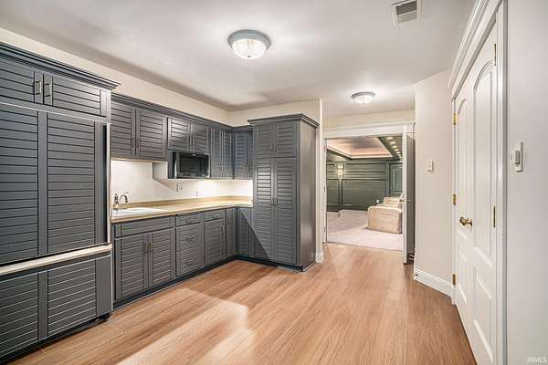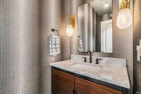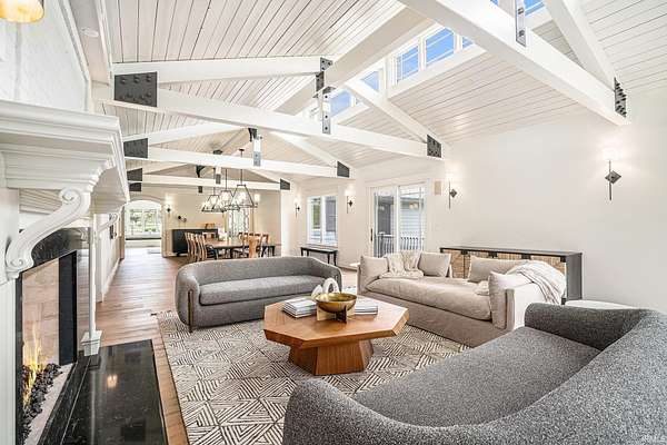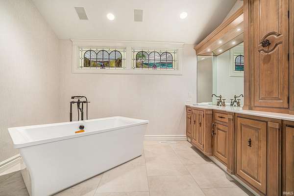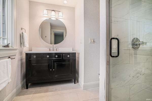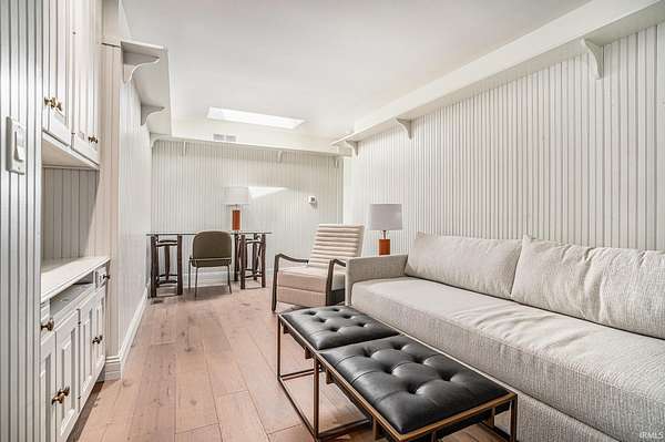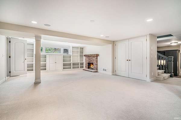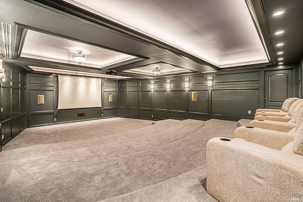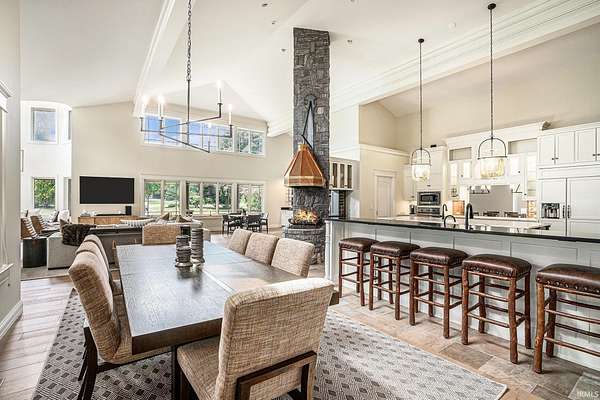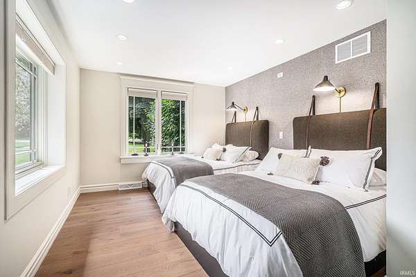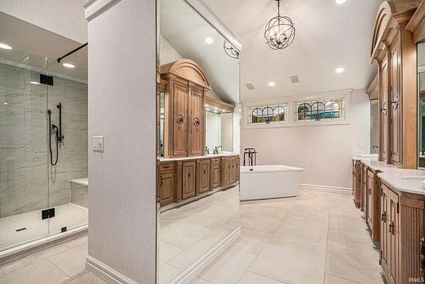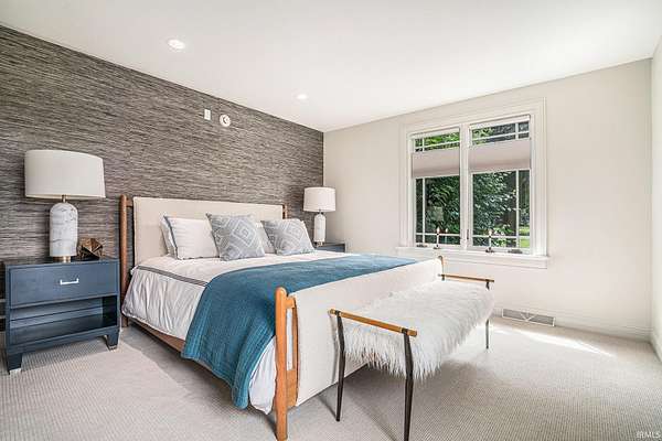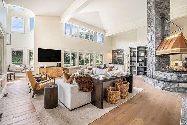 Open House Scheduled for August 23 1-3pm! A stone bridge and layered landscaping set the tone for this private 5.8-acre estate near downtown Middlebury. Inside, the home has been modernized--redesigned and furnished for a part-time retreat, though fully equipped for year-round living. Vaulted ceilings, high windows, and lit beams draw light into the open-concept living area and kitchen, where original tile and hardware meet new hardwood flooring, Ayr cabinetry, and a statement three-sided gas fireplace. The dining room and hearth offer an interlude between the main spaces with a natural extension to the sunroom and patios. Every light, rug, seat, book, throw, and furnishing has been carefully chosen and is included in the sale--making this home ready to be lived in. The primary suite features its own fireplace, skylights, soaking tub, and walk-in shower. On the other side of the home are additional bedrooms and a sitting room. Downstairs, you'll find a tiered theater room and kitchenette, two half baths, and an open versatile space, all fit for hosting large groups. Outside, enjoy the pool and outdoor kitchen, and a hillside firepit overlooking the Little Elkhart River. In total, the home has 5 bedrooms, 4 full and 4 half baths, two laundry areas, and a 5-car garage. A detached garage offers four stalls, one RV stall, and RV hookups. The home has two heating sources: gas forced air and geothermal via pond. From high ceilings to rolling grounds, this property reflects extravagant living and well-kept spaces--the perfect backdrop for your next chapter.