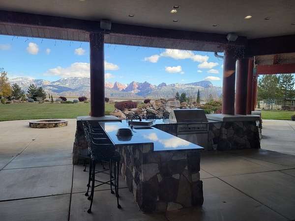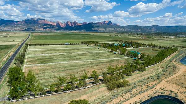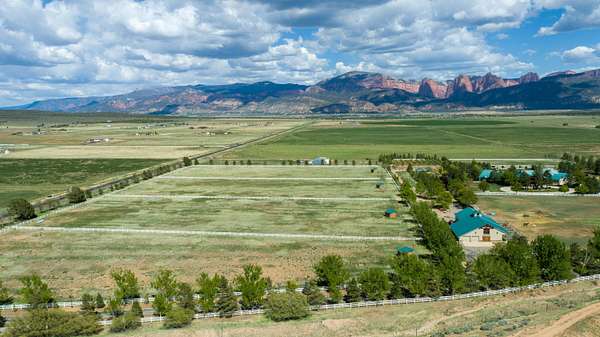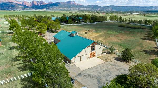 A truly exceptional Southern Utah estate offering luxury, privacy, scale, and significant water resources, set on 37.22 acres with commanding views of the Kolob Mountains of Zion National Park. This is a legacy property designed for refined living, equestrian use, and long-term agricultural value where every element has been thoughtfully developed and meticulously maintained. The 9,552 sq ft residence showcases timeless craftsmanship and grand proportions throughout. At the heart of the home is a chef's kitchen featuring a Dacor 6-burner range with grill, Sub-Zero refrigeration, dual dishwashers, oversized islands, and exquisite finishes anchored by a striking petrified wood fireplace that serves as both an architectural statement and a warm gathering place. The recently remodeled primary suite bath offers a serene, spa-like retreat, while multiple fireplaces, central vacuum, dual laundry setups, and a full-house natural gas generator provide comfort, convenience, and peace of mind. Designed for serious equestrian and ranch use, the impressive barn and ranch complex includes radiant gas heat and A/C, a full bath, office, tack room, custom woodshop, two spare rooms, hay barn, garage, and eight oversized 12'*12' stalls, all serving multiple fenced pastures. A Quonset hut parcel further enhances the property's operational flexibility and storage capacity. The grounds are both productive and picturesque, featuring fenced pastures, orchard, garden areas, chicken coop, patios, outdoor kitchen, and expansive lawnsall fully irrigated and framed by mature trees and open vistas. Outdoor lighting, roof snow stops, heat tape, and additional ranch amenities support year-round functionality. A defining feature of this estate is its exceptional water portfolio, a significant contributor to overall value. Per State of Utah records, the property includes approximately 140.4 acre-feet of water rights, consisting of 6.0 AF of underground well rights and 118.9 AF of surface irrigation rights, supporting agriculture, landscaping, and long-term land stewardship. Current irrigation is by flood, with piping present for future configuration. Additional features include a fuel tank for farm operations, extensive irrigation components, and infrastructure that is increasingly difficultif not impossibleto replicate today. This is a rare opportunity to acquire a private estate that seamlessly blends luxury living, ranch capability, and enduring water assets set against one of Southern Utah's most iconic natural backdrops.