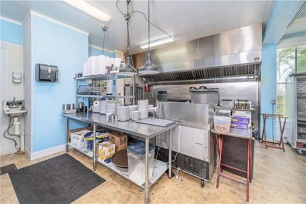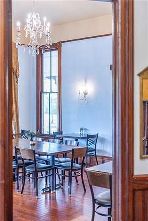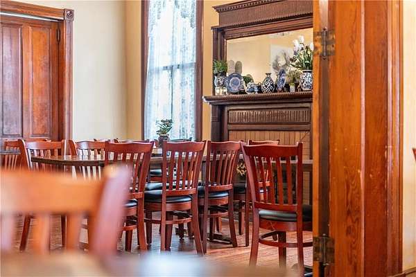 The main level features a fully operational commercial kitchen and comes complete with all necessary restaurant equipment, allowing you to step right into business. Rich in character and tastefully updated, the dining areas invite guests to experience a one-of-a-kind atmosphere that honors the home's original architecture.