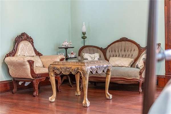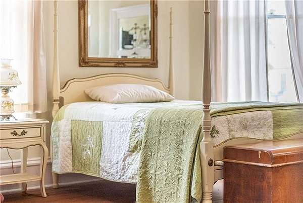 Upstairs, you'll find four spacious bedrooms, ideal for a bed-and-breakfast setup. These private quarters provide a warm and inviting stay for guests looking to enjoy a more personalized experience in this charming Southern town.