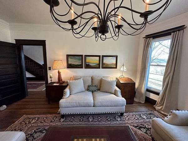 Historic Home on 15 Acres in Blue Ridge Mountains. This is the perfect mini-farm! Beautiful Farm House with 5 or 6 bedrooms, 3 baths, several living areas, a formal dining room, central heat and air, beautifully refinished hardwood floors, wide, covered porches and gorgeous views. The yard contains mature trees and most of the property is open pasture. There is a small branch, nice barn and some outbuildings, everything you need to get started with your own mini-farm. This would be the perfect house for a large family or entertaining groups. Located in close proximity to the New River and not far from Jefferson National Forest, Grayson Highlands Park and just a short drive to the town of Independence VA.