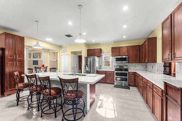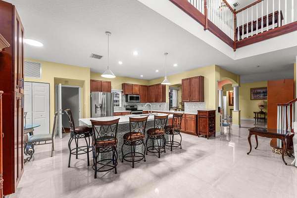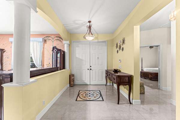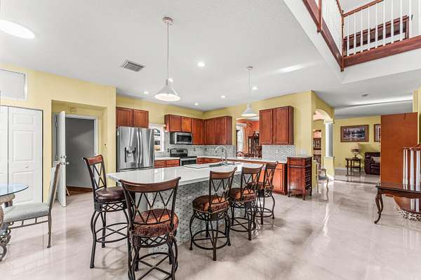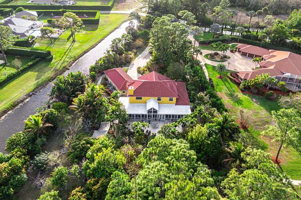 Welcome to this extraordinary, custom-built, estate home nestled in a cul-de-sac on 1.82 acres, located in the prestigious community of St Andrews of Sherbrooke. This community is minutes from the equestrian capital of the world and the epicenter of American polo in Wellington. The winding driveway to the home showcases a myriad of rare and exotic plants and tropical trees. The spacious, multi-level, 3-bed/4-bath home is ideally situated on a private canal-front. It boasts 4,000+ sq ft of living spacewith new porcelain floors on the first floor, and features two primary suites, formal living and dining rooms, multiple living areas, and a wood-burning fireplace. The kitchen showcases, quartz countertops, marble back splash, SS appliances and opensto a breakfast nook. The upstairs, oversized primary suite offers a sitting area, walk-in closets, extra-large bathroom with double sinks, and a separate, large walk-in shower. The loft includes a wet bar and can easily be converted into a fourth bedroom or office. Major updates include impact windows and doors (2019); exterior living spaces completed in 2020; new impact-rated hurricane doors on a 3-car garage (2023); new roof replacement (2023) and 3 A/C systems throughout. Outdoor highlights a dual irrigation system (well+ canal). Adjacent to the property is NOKOSI, the new Jack Nicklaus championship golf course - a premier golf and lifestyle destination featuring a Jack Nacklaus-designed course, wellness center and more. The course is currently under construction and is scheduled for preview play in 4th quarter 2026. This is a rare opportunity for you to own a hidden gem of Royal Wall construction, with major updates in one of Palm Beach County's upscale communities. Now is the time to establishyour residency before home prices increase.