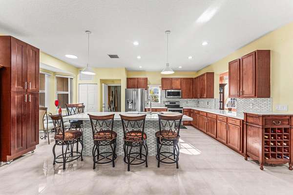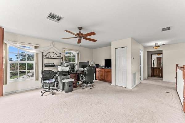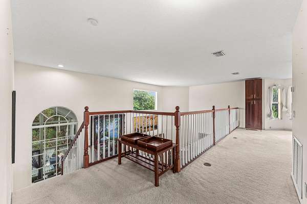- Central Vacuum, High Ceilings, Kitchen Island, Pantry, Roman Tub, Split Bedroom Layout, Upstairs Living Area, Walk-In Closet(s), Wet Bar