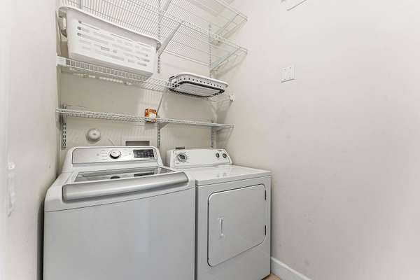 - Dishwasher, Disposal, Dryer, Electric Range, Electric Water Heater, Ice Maker, Microwave, Refrigerator, Washer, Water Heater