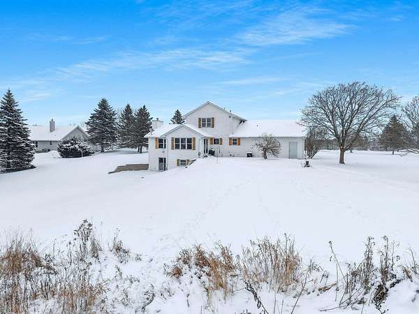 Stunning, hard-to-find, picturesque 7.44-acre lot in the highly desired Denmark School District, this spacious 2-story home offers the perfect blend of privacy, convenience, and updates. Step through the front door into over 2,890 sq ft of living space featuring 5 bedrooms, 3.5 baths, a gas fireplace, an exceptional floor plan, and abundant natural light. Enjoy the comfort of a 4-seasons room, first-floor laundry, first-floor primary suite, and a partially finished lower level with a full bath and additional bedroom. The land is rich with wildlife, walking trails, and a small creek running through the property. The attached garage is generously sized with basement access, and for even more storage or workspace, a 27x35 detached garage/outbuilding is included.