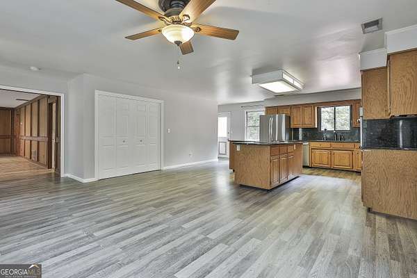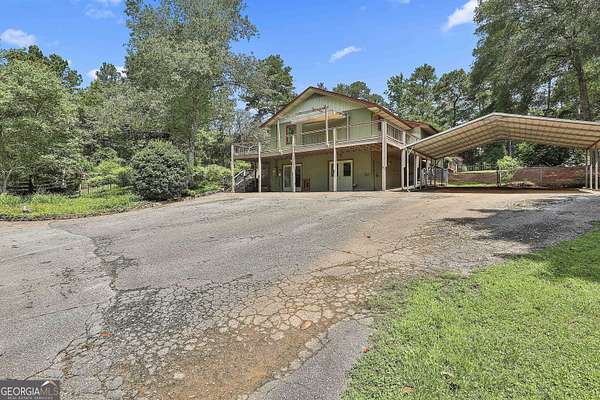 Wonderful opportunity for your own private farm or homestead! Chattahoochee Hills area of South Fulton. This property boasts several outbuildings/sheds, large barn, goat barn, dog or chicken pen/run, fenced and cross fenced, covered carport parking and 3 gated entrances. Beautiful mature hardwoods for ultimate privacy! Home has oversized open kitchen/dining area, large great room with fireplace, three full bedrooms and three full baths on main floor. Master bedroom has natural skylight lighting, plantation shutters, hardwood floors, walk in closet with built in shelving. Full baths with tile showers, tile surround tub, nice finishes. Finished basement is perfect for in-law area or teen suite with office space, open den, kitchenette, bedroom and full bath. Large laundry room in basement with cabinets, folding table, laundry sink and two washer/dryers! Don't miss the abundant features this home and property offers! Multiple areas of interior and exterior storage, beautiful mature hardwoods, flowering trees and shrubs, hardwood floors, LVP and tile throughout. All in Chattahoochee Hills, close to South Fulton Pkwy, Airport, Atlanta, South Fulton, etc. Priced below county fair market value!