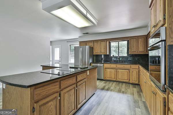 - Cooktop, Dishwasher, Disposal, Dryer, Electric Water Heater, Microwave, Oven, Refrigerator, Stainless Steel Appliance(s), Washer