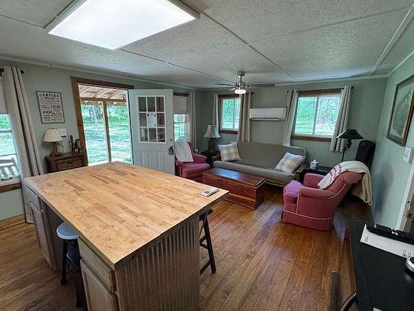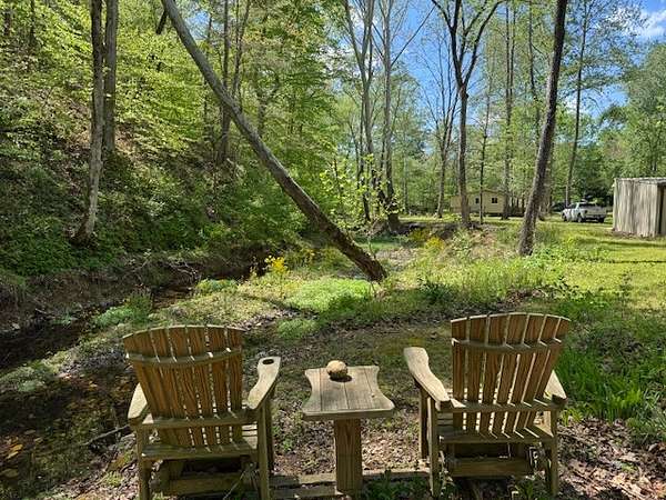 Build Your Dream Home on this CREEK Property! Bonus: Live in the beautifully renovated 1-bedroom, 1-bath cabin which sits peacefully beside 377’ of year-round creek frontage, where the soothing sounds of flowing water set the tone for relaxation. You might notice the creek-side chairs of the owners, situated to fully engulf themselves with sight and sound of their beloved creek. Thoughtfully updated yet full of rustic character, it’s the ideal place to unwind and recharge.