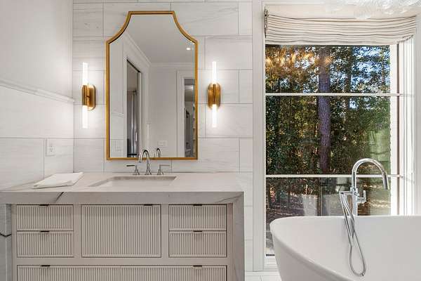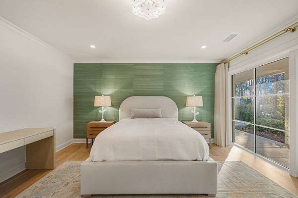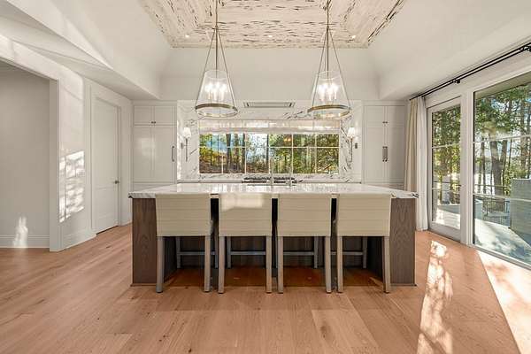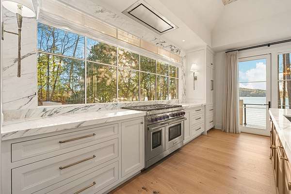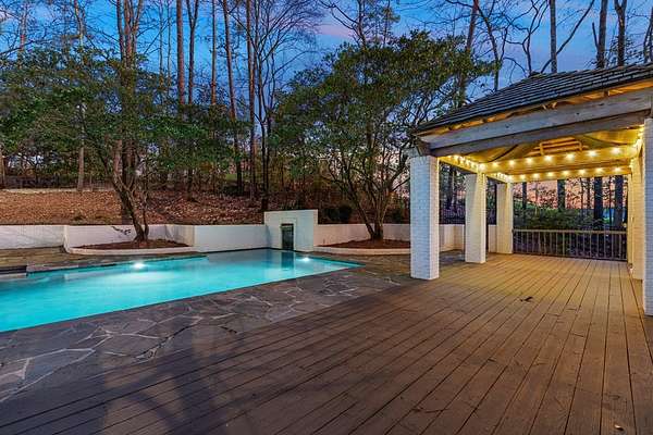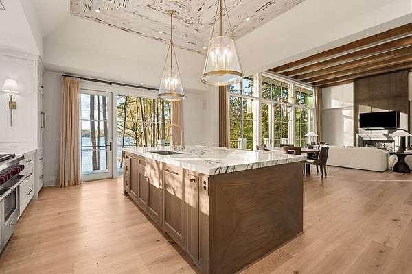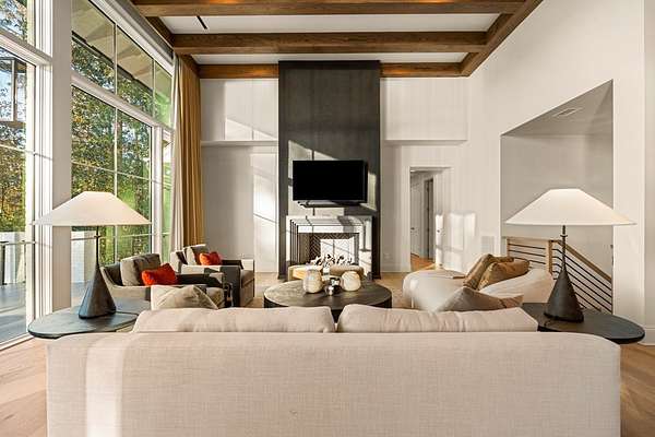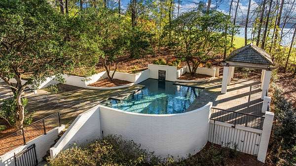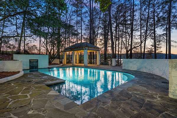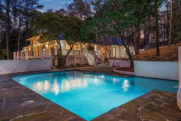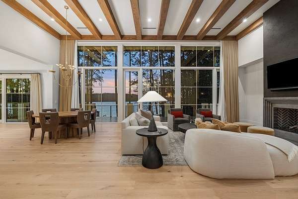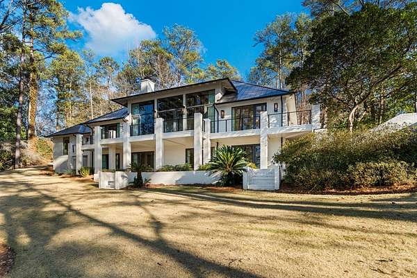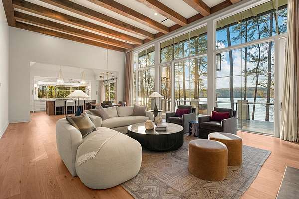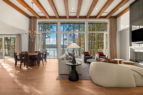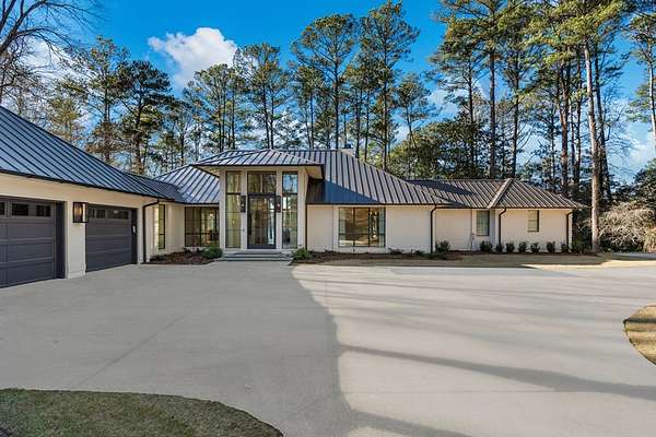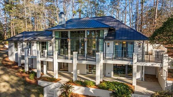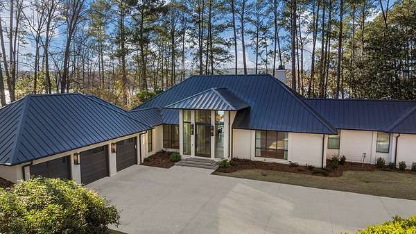 Where architectural artistry meets the tranquility of lakeside living - Welcome to 6227 Waterford Road on pristine Lake Oliver! The design fuses mid-century modern elegance with California Contemporary warmth, balancing open, light-filled volume with natural textures. Walls of windows capture lakefront views from nearly every room, while sunlight dances across grand living spaces. The moment you enter the home, the 15 foot foyer sets the tone with striking sightlines straight through to the water. The adjacent living room offers dramatic scale, artful angles and custom finishes that accentuate the home's architectural form. The chef's kitchen is equally impressive - a sleek, modern workspace with premium appliances, custom cabinetry, oversized island and a seamless flow into the dining area and family room. Entertain with ease or unwind in serenity - every inch of this home has been designed for both comfort and sophistication. Each of the four ensuite bedrooms offers a private sanctuary. The primary suite features a spa-caliber shower with free standing tub and custom walk-in closets. A dedicated office and flexible bonus spaces allow the home to adapt to a variety of lifestyles!. Step outside to your own resort-inspired oasis. The inground pebbletec pool sits lakeside, surrounded by beautifully designed terraces ideal for quiet mornings with coffee by the water. Mature landscaping complements the home's architectural geometry, offering both privacy and a natural connection to the lake beyond. Every detail of this completely renovated stunning home has been crafted to capture the essence of modern elegance and effortless luxury!