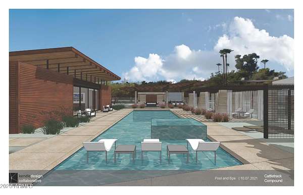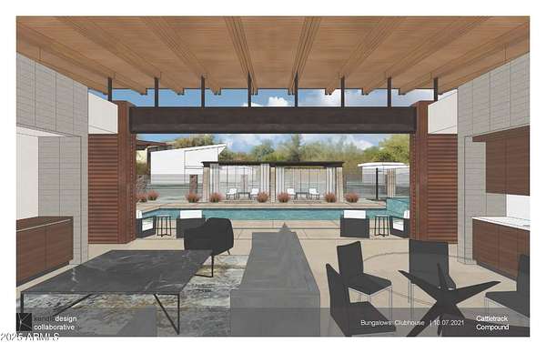Situated along the historic Cattletrack Arts and Preservation district, the ''Cattletrack Compound'' connects to Scottsdale's authentic cultural heritage dedicated to artists and craftsmen. The architectural response for this property arranges diverse programs into several buildings, each bearing a consistent contemporary agrarian-ranch inspired feel and rustic palette that blends effortlessly with the surroundings given the art studios' organic development. The architecture showcases a high level of craftsmanship simultaneously demonstrating structural integrity through exposed structural elements of steel, concrete, and wood juxtaposed against refined and meticulous detailing. As one enters the property, one discovers the multi-use car-barn featuring an open space for displaying cars or hosting family or fundraising events. As one traverses past the central organic garden, one discovers the main house, guest bungalows, and outdoor pool pavilion situated at the back of the property. Thus, this compound becomes another Cattletrack sanctuary hidden amongst the trees.
