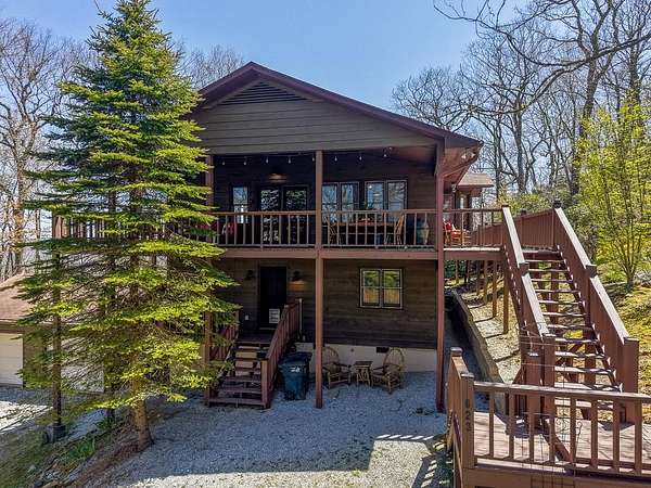 Wake up above the clouds at approx. 4,400 feet, where long range mountain views stretch for miles and every moment feels like an escape. Whether it's sipping coffee on the expansive deck as the sun rises or winding down under a painted sunset, this is the kind of place people come to unplug and stay awhile. This 2BR 3BA mountain retreat offers an inviting, open concept main level designed for gathering and simply enjoying the quiet of the mountains. Downstairs, the home opens up even more with a second living area and TWO bonus rooms. A cozy reading nook tucked beneath the stairwell adds a thoughtful touch, while an additional bonus area provides the potential for a future kitchenette, game room, or lounge. Bonus rooms are not counted as bedrooms due to septic limitations. Recently became vacation rental and offered mostly furnished and with a freshly painted exterior, it is ready for immediate enjoyment. A detached 2 car garage adds convenience and storage. Located less than 30 minutes to Cashiers and Highlands, you are close to some of the area's best dining, shopping, and outdoor adventure while still feeling completely tucked away in your own mountain escape.