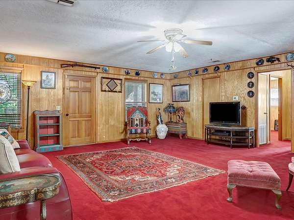 Escape to the country with this 3 bed, 2 bath home set on 9.31 acres. Solidly built and full of potential, this home is surrounded by a beautiful rural setting with plenty of room to roam. Step inside to a spacious open concept living room anchored by a large wood burning fireplace, combo dining area, and cozy kitchen with updated countertops and appliances. The primary suite features a sizable bedroom, small office or sitting room, walk in closet, and separate dressing area. A converted garage provides extra living space perfect for a den or bonus room. The split bedroom arrangement offers plenty of privacy for guests, and there is generous storage throughout. The property is fully fenced and cross-fenced, making it ideal for livestock or horses. Several pole barns provide considerable storage for equipment, hay, or projects, while a tranquil pond adds both charm and functionality. If you've been searching for classic East Texas appeal, this is the one!