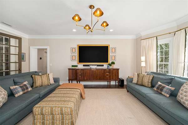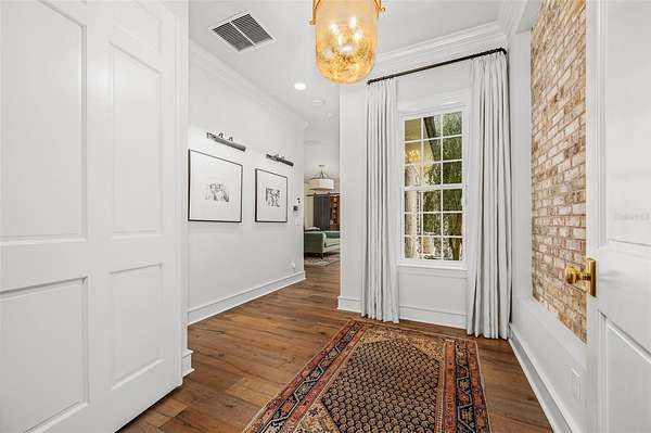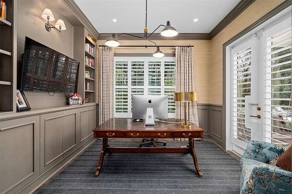 Designed with entertaining in mind, the formal dining room connects to the stunning chef’s kitchen through a separate butler’s pantry, providing the perfect space for catering prep and seamless hosting. Upstairs, a gracious landing with open-air balcony access leads to three additional private suites, plus a flexible bonus room with built ins.